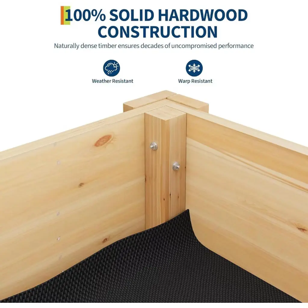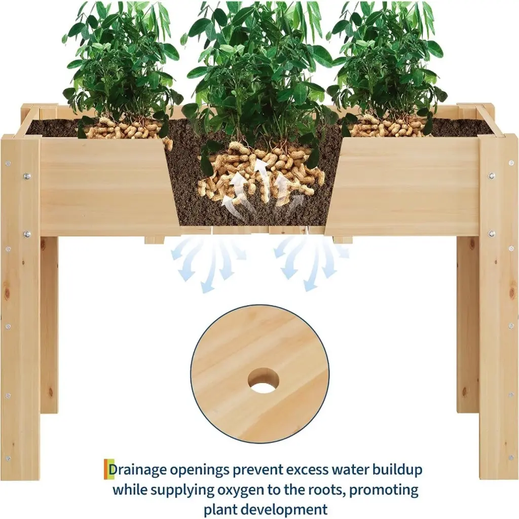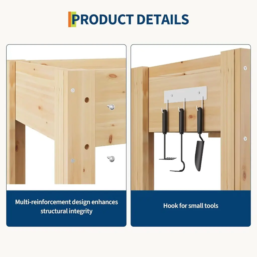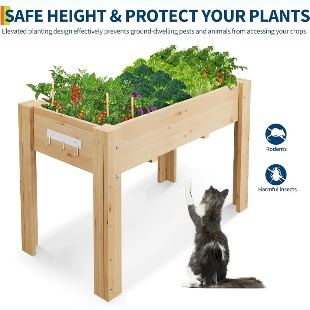 The Acekool 47x30x22 Inch Raised Garden Bed with Stand delivers a practical and attractive solution for growing vegetables, herbs, and flowers in your backyard or patio. Constructed from natural fir wood, this planter box combines strength with an appealing organic look. Its untreated, chemical-free wood ensures a safe growing environment for your plants while highlighting the natural texture and scent of wood. Designed with stability in mind, the garden bed uses a solid rectangular frame reinforced by cross battens and secure hardware. The ergonomic elevated height helps reduce back strain during planting and gardening tasks. Side hooks provide convenient tool storage, while a single-piece side panel design prevents soil leakage and enhances durability. The included non-woven fabric liner retains soil and moisture and features drainage holes to avoid water buildup and promote root health. Ideal for both new and experienced gardeners, this raised bed enhances the beauty and functionality of your outdoor space. It’s easy to assemble and provides a reliable platform for growing robust plants season after season. Specifications: Dimensions: 47" Length × 30" Width × 22" Height (4x2.5x1.8 ft) Material: 100% natural, untreated fir wood Features: Reinforced corner legs, dual cross battens, wooden caps and screws, hooks for tools Includes: Non-woven fabric liner with pre-drilled drainage holes Color: Natural wood tone Assembly: Tool-assisted setup with included hardware