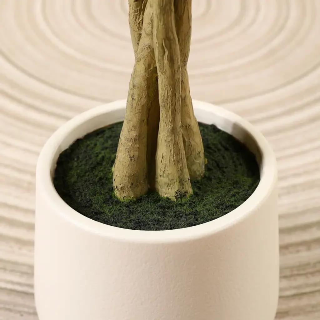 Adcock Artificial Ficus Tree With Round White Planter, Pre Potted Faux Money Tree For Home Decor