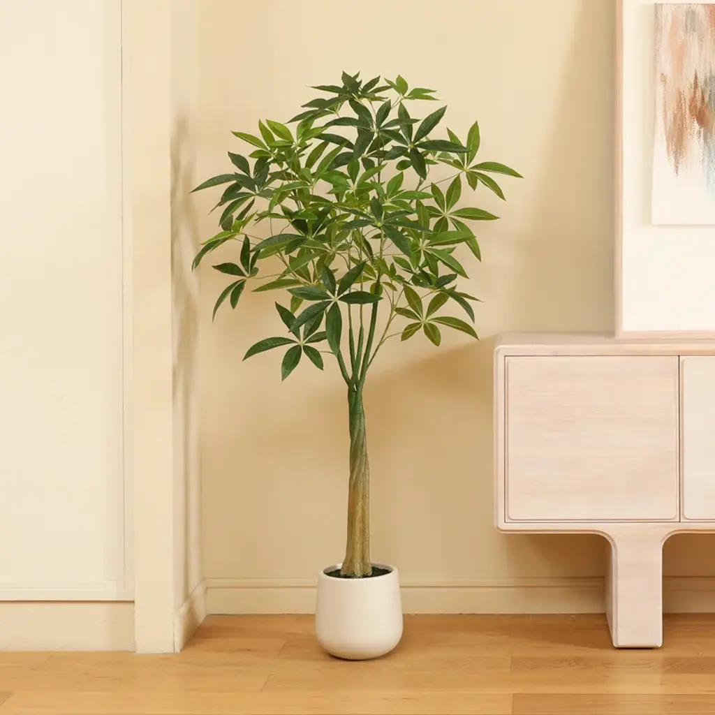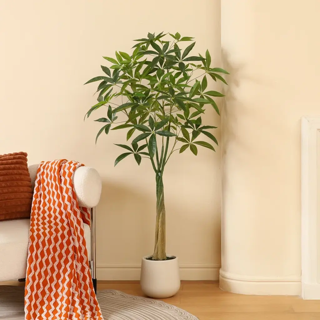 Introducing the Pre Potted Faux Greenry Plant - the perfect home decor for nature lovers. This stunning artificial fiucs tree with oval white planter has lifelike leaves and fruits, making it ideal for creating a tropical atmosphere in your living environment. The faux silk money tree is super easy to maintain. It requires no watering, pruning or fertilizer applying, all you need to do is place it in the space and dust it regularly, and it will stay fresh for an eternity. Our artificial fiucs trees come pre-assembled in heavy-duty pots made of plastic and concrete, ensuring each tree can stand on its own. The fiucs tree branches are adjustable, allowing you to easily rearrange them to your preference. Item may need to be reshaped when removed from the box.This big fake plant is perfect for decorating living rooms, bedrooms, reading rooms, dining rooms and offices. It is also suitable for outdoor use on entryways, patios, and commercial locations such as bookstores and coffee shops. Choose our high-quality artificial money plants to bring natural beauty to your home or office space. The faux money tree is a magnificent addition to any space, adding a touch of greenery and serenity to your everyday life. Order now and enjoy the beauty of a faux money tree for years to come!