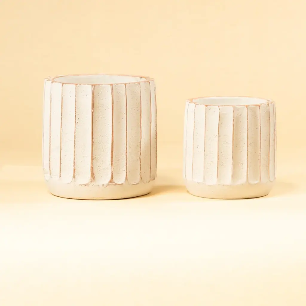 Bring the charm of a modern farmhouse to your home with this round clay planter. Perfectly sized for indoor plants, it adds a touch of natural simplicity to any room.