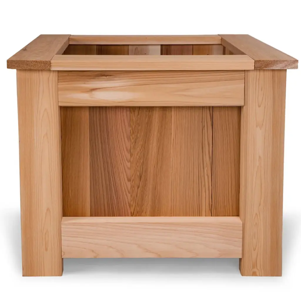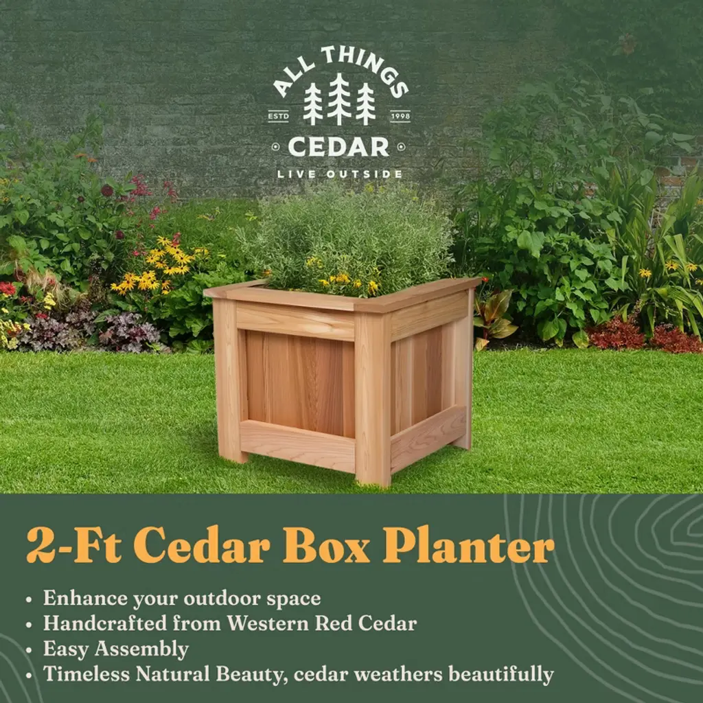 Crafted from the finest Western Red Cedar, the All Things Cedar Premium Cedar Box Planter is the epitome of natural beauty and unparalleled craftsmanship. Elevate your outdoor living space and transform it into a lush, flourishing sanctuary with this stunning planter box. Designed to captivate and inspire, this cedar planter box exudes timeless charm and rustic elegance. Expertly constructed from 100 percent natural, untreated Western Red Cedar, it boasts exceptional durability and resistance to the elements for lasting durability. The warm, inviting wood tone and smooth, sanded finish create a striking visual appeal that will seamlessly complement any outdoor decor. Measuring 17.25 inches long, 18.5 inches wide, and 15.25 inches tall inside the box, the flower planter provides ample space for a variety of plants, flowers, herbs, and vegetables to thrive. The adjustable floor boards allow you to customize the depth to suit your specific growing needs, ensuring your plants receive the optimal environment for healthy, vibrant growth. Transform your outdoor space into a lush, captivating retreat with the All Things Cedar Premium Cedar Box Planter. Embrace the timeless charm of natural cedar and let your creativity blossom as you design stunning arrangements to enhance your patio, deck, or garden.