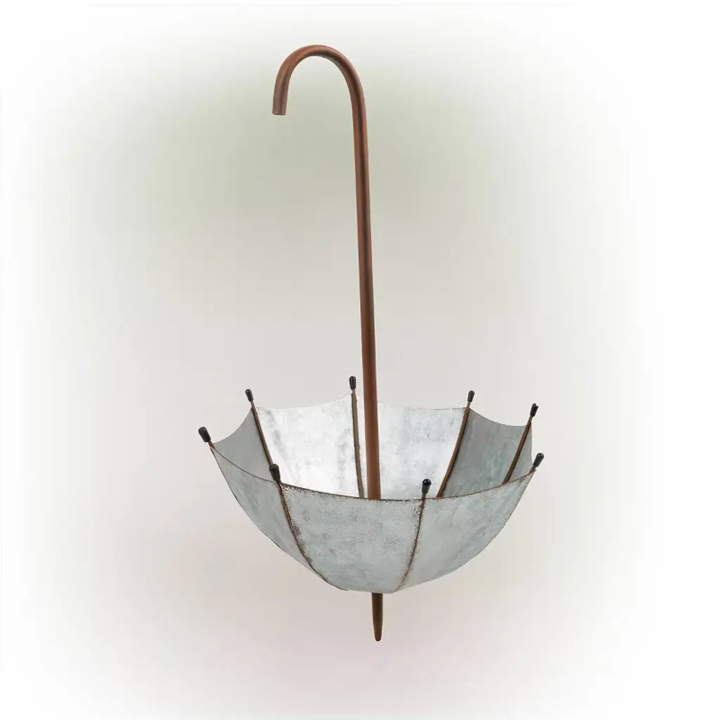 Alpine Corporation 10" Upside-down Umbrella Iron Outdoor Novelty Planter Silver