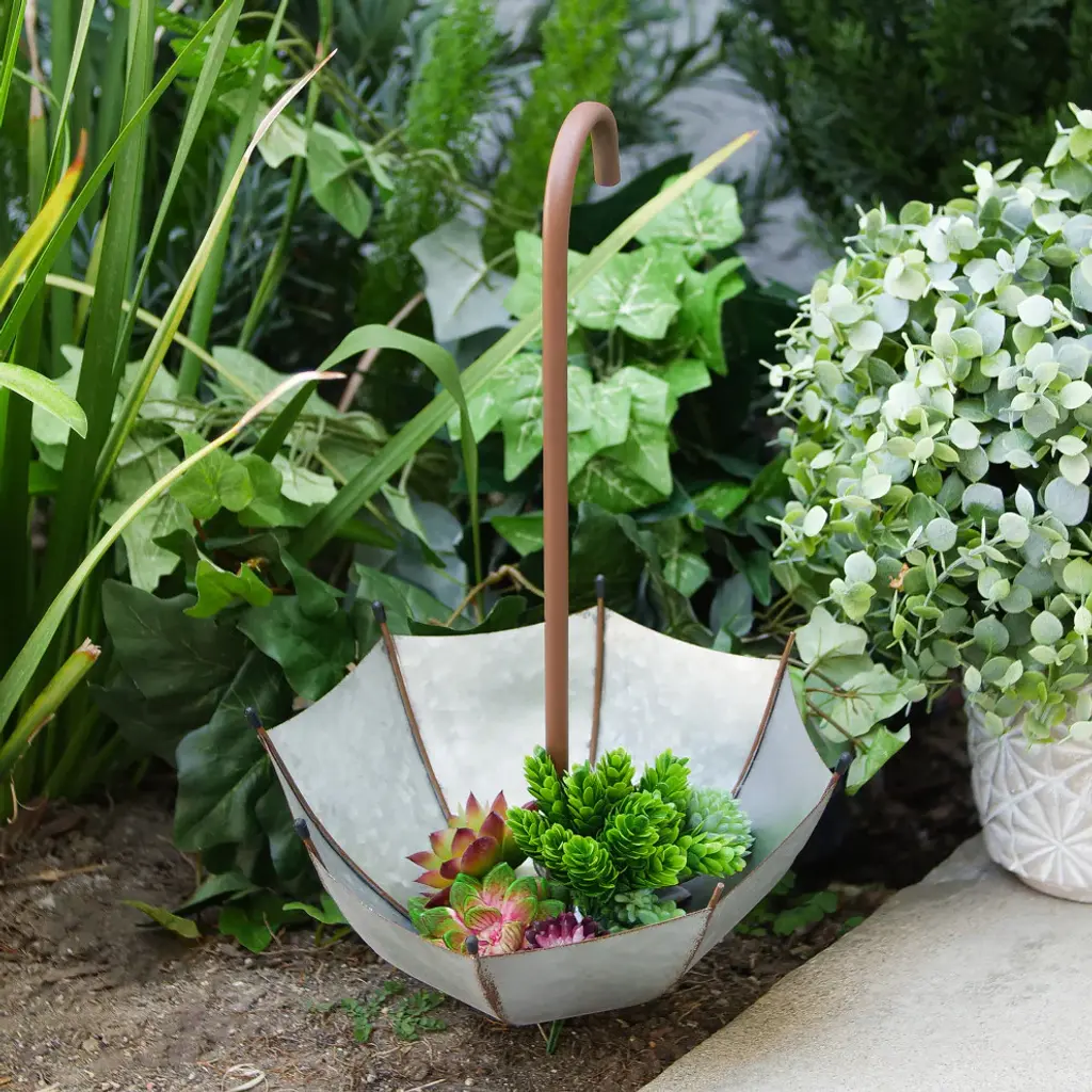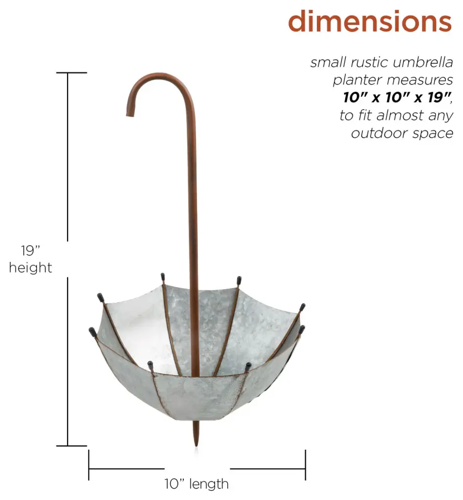 Alpine Rustic Outdoor Upside Down Umbrella Stake And Planter, 19"