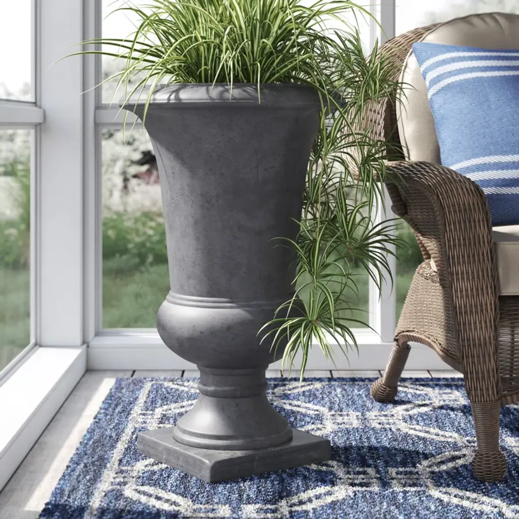 This handmade urn planter is made from quality materials that make it right at home in any indoor or outdoor space, from the bedroom to the back patio. It's crafted from lightweight plastic and resin with a hand-applied finish to ensure that it has its own unique patina. Best of all, this planter has a drain hole and plug, plus it's rust-, frost-, and weather-resistant.