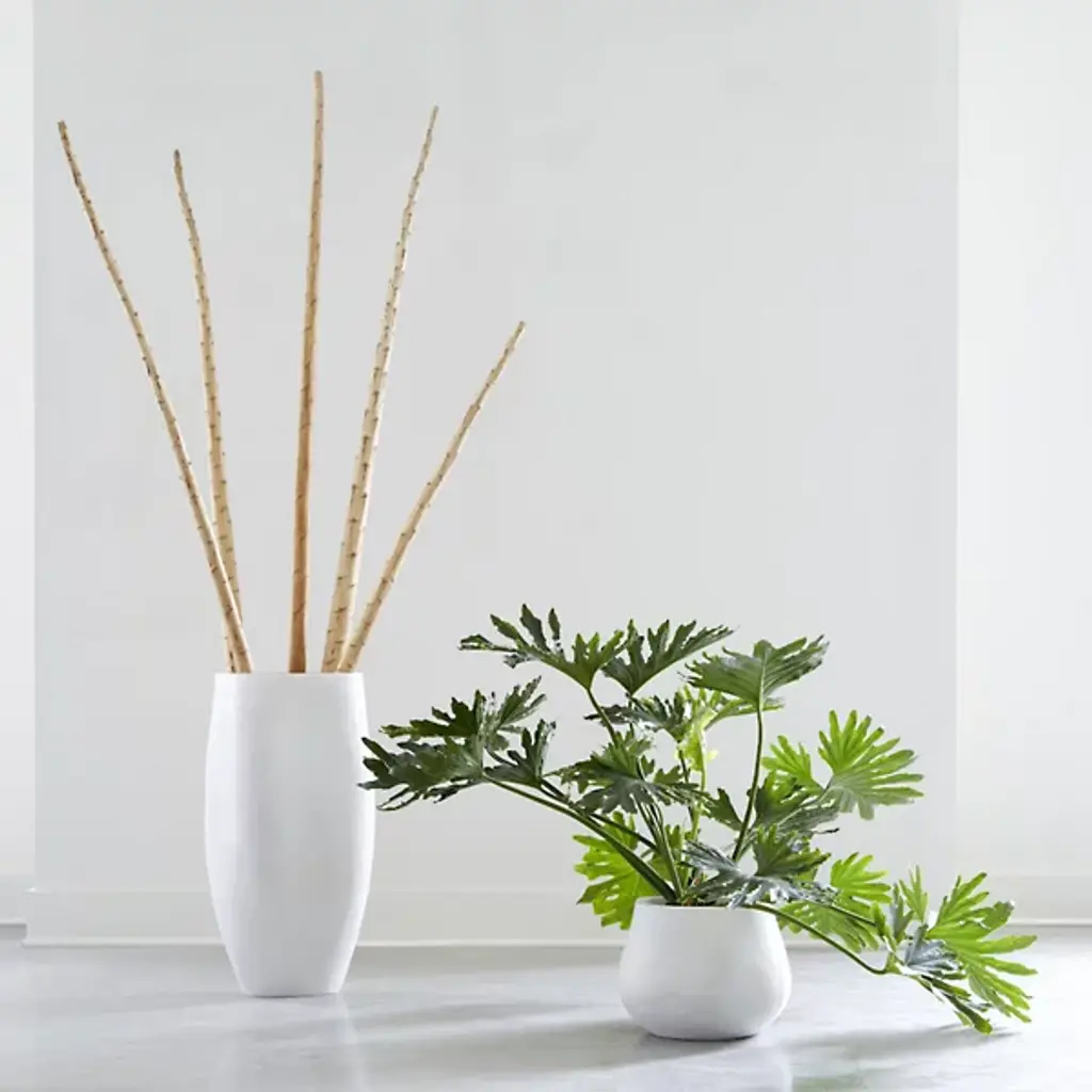 The Amorphous Tall Planter from Phillips Collection stretches the irregular pond-inspired form into vertical proportions while maintaining its organic asymmetry. Stone cast resin composite achieves authentic mineral texture through crushed stone integration, creating natural tactile appeal. The elongated silhouette offers unexpected planting opportunities with its curved, irregular opening that follows organic contours. Ideal for both indoor and outdoor applications, each vessel varies slightly due to handcrafted molding processes, ensuring individual character.