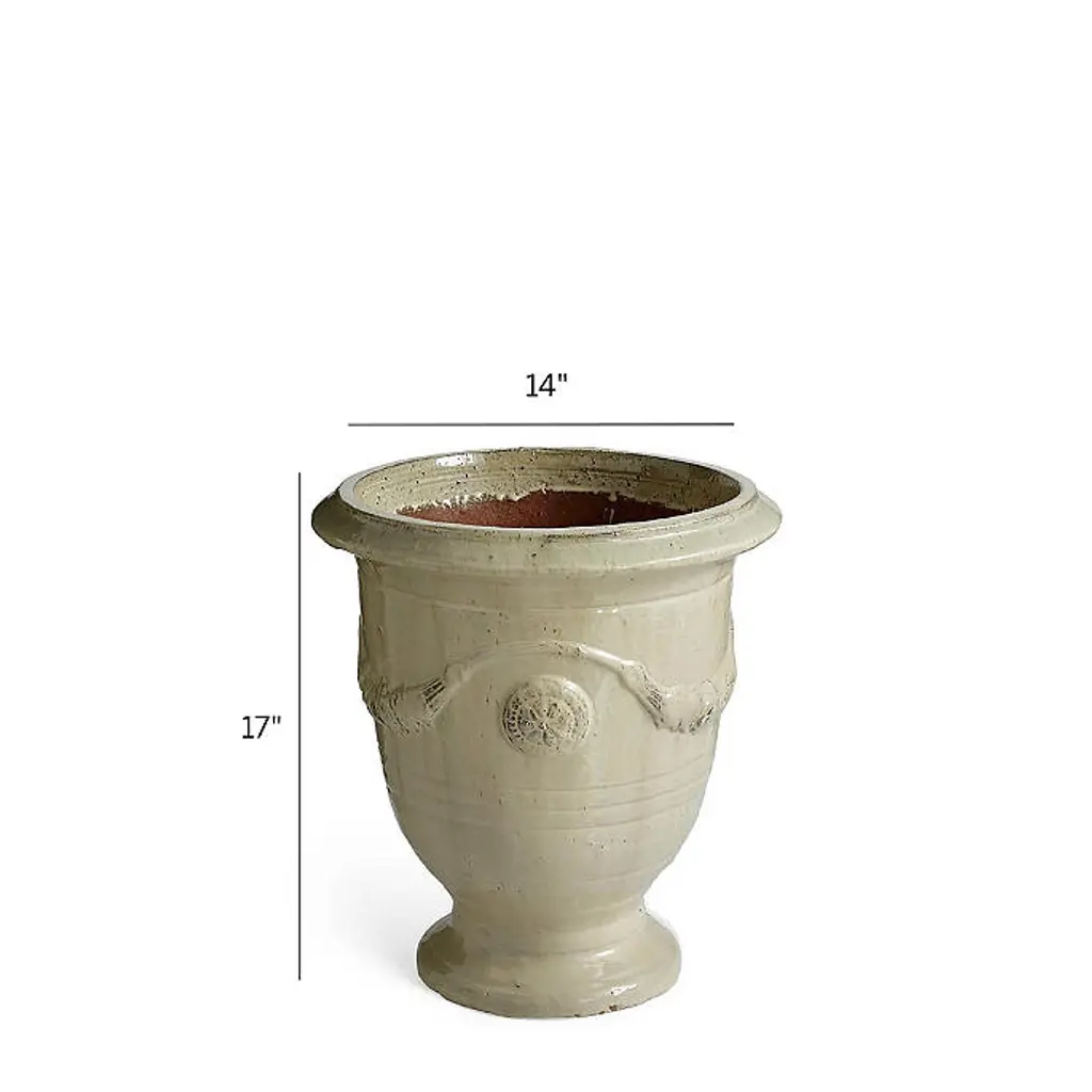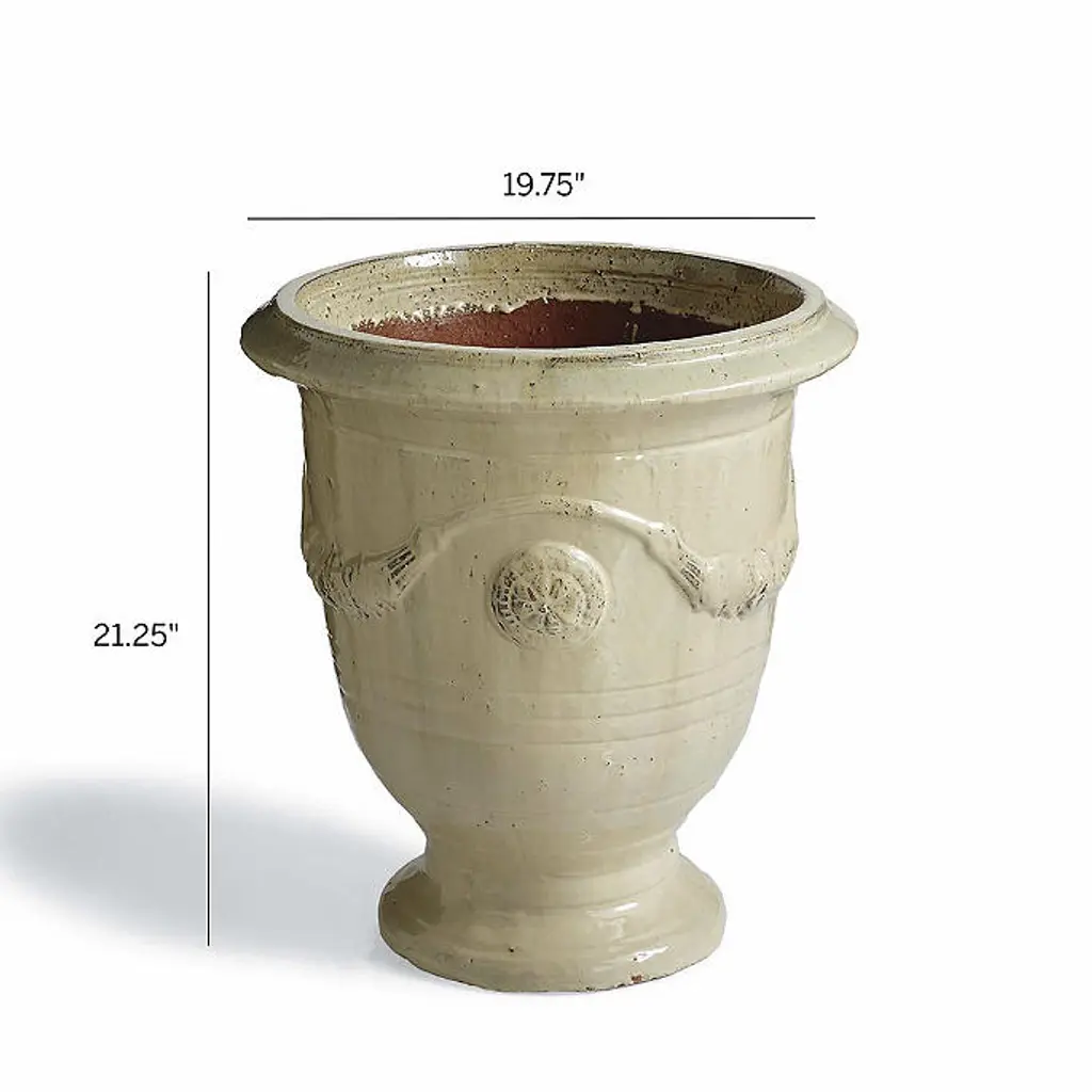 Urn-shaped and adorned with garlands and medallions, these hand-glazed ceramic planters are a staple in French gardens. With the special nature of the reactive glaze, the Azure finish displays a range of variation in tone from soft aqua and turquoise to deep azure. Each planter will appear inherently unique. Our Anduze Indoor/Outdoor Planters can stand alone as pottery pieces or complement your chosen plantings. Perfect accent for entryways, walkways or indoor/outdoor entertaining areas Finish will vary due to the glazing process and will not be identical to the image shown Arrange individually or in groupings Bottom drain hole releases excess water; if used indoors we recommend to use a plug To prevent injuries or damage to item, recommended team lift (two or more people) for furniture placement At Frontgate, our primary focus is quality. We guarantee that every product we sell will stand up to the supreme test – our customers' satisfaction. To learn more about our policies, visit our Shipping & Processing, Returns & Exchanges and Warranty & Price Guarantee pages.
