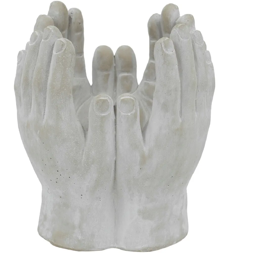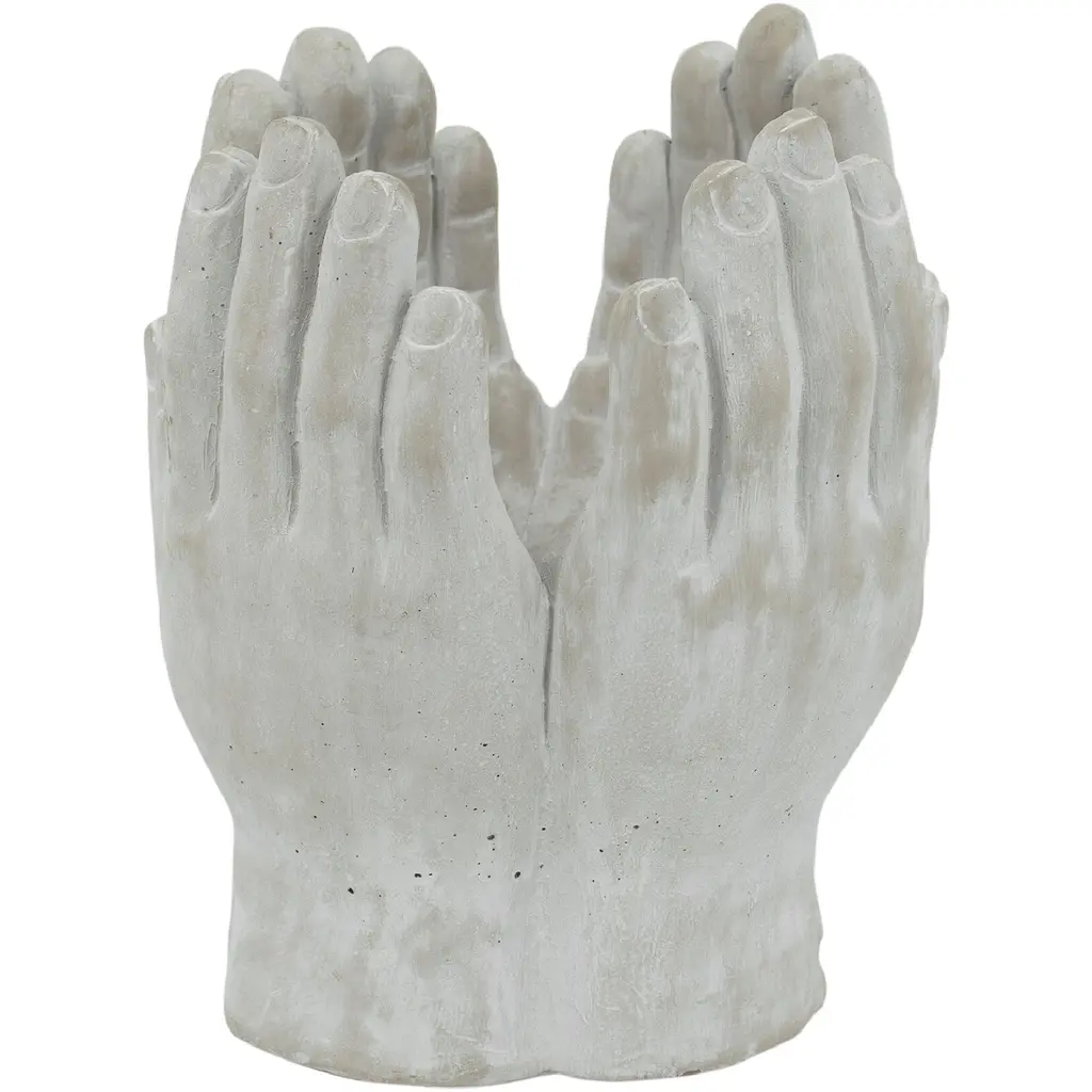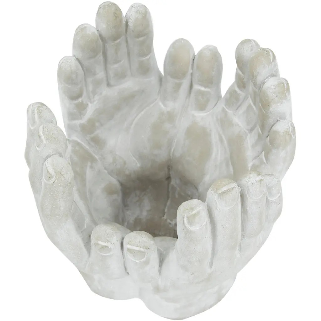 Cast into the shape of two pairs of cupped hands, this wonderful planter is a stylish addition you can place anywhere in or around your home. The hands create an open vessel in which you can store your cell phone, remotes, keys and more, or use it as a plant pot for succulents, greenery, herbs or flowers. Made of concrete in a soft Gray finish, it can be displayed both indoors and outdoors.