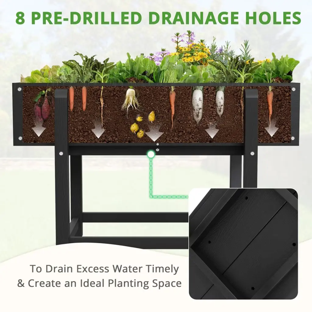 [Durability & Safe HDPS Material]: The garden box won't crack, fade, peel and rot in any weather condition. It is made of HDPS material,which passed the SGS safety certification of US. You don't need to brush oil for maintenance, just clean it with garden hose to keep it clean [Flexible movement]: Even if Being filled with heavy soil will not affect its flexibility. You can move the flower bed around the deck depending on the sun and wind. [Additional Free Tools]: shovel(2pcs), non-woven fabric(1pcs), hook(3pcs), rake(1pcs). Just fill with soil, seeds or plants and place in a sunny location [Large Capacity] The Large size planter box: 39.4¡±L x 16.7¡±W x 28¡±H, 8''depth, holding about 3.3 cubic feet of soil. [Super Simple Assemble] Just need 20 minutes. The planter box includes Step-by-Step instructions, all the screw holes lined up perfectly, Watching installation videos in advance can greatly reduce installation difficulty.