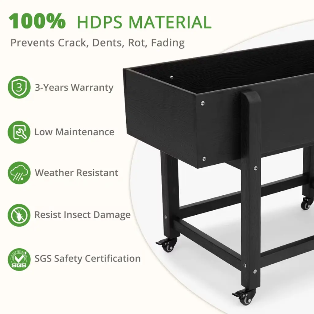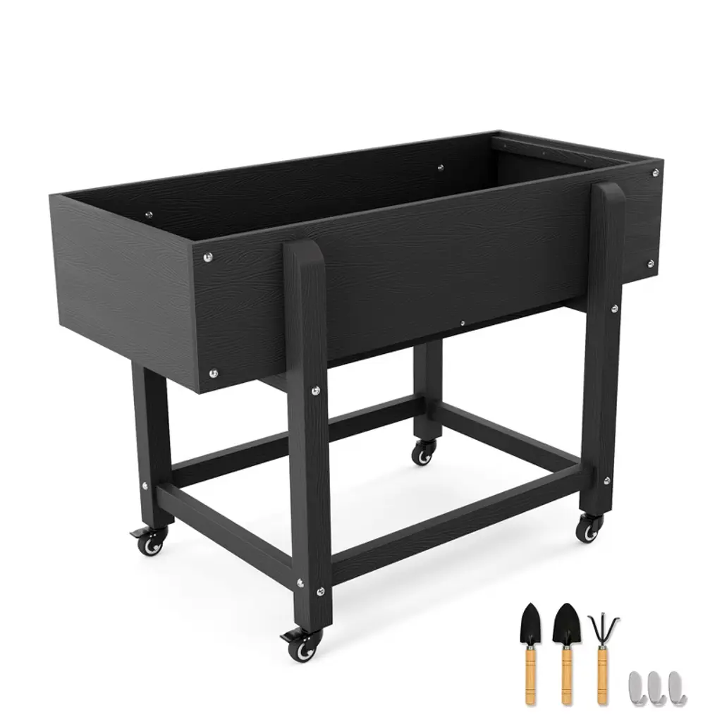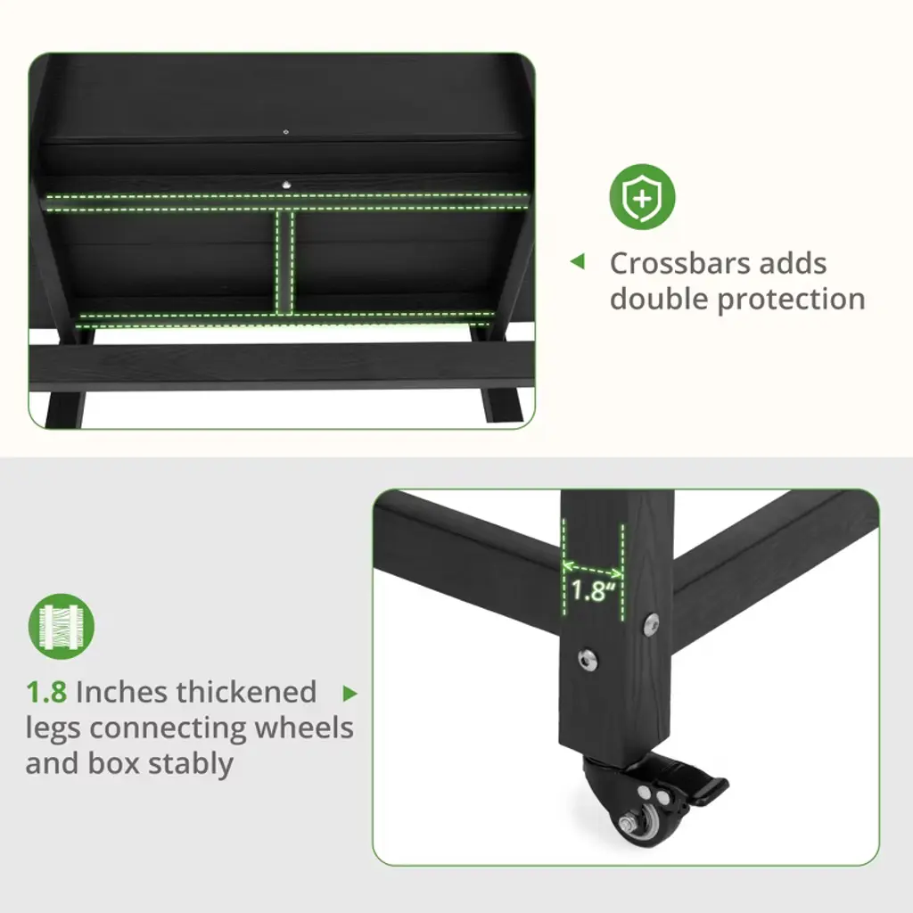 Arceso Raised Garden Bed With Wheels, Hdps Elevated Planter Box With Tools, Standing Growing Bed Herb Planter For Vegetable, Black