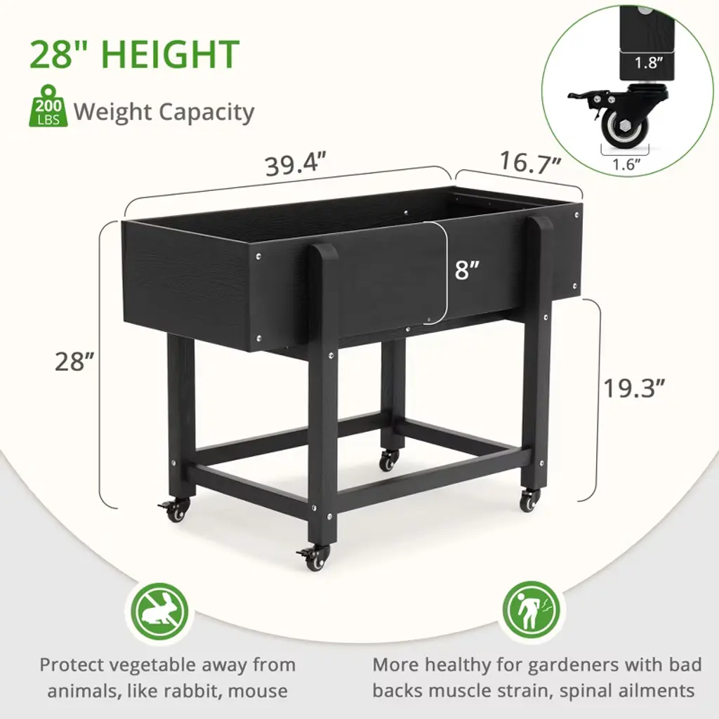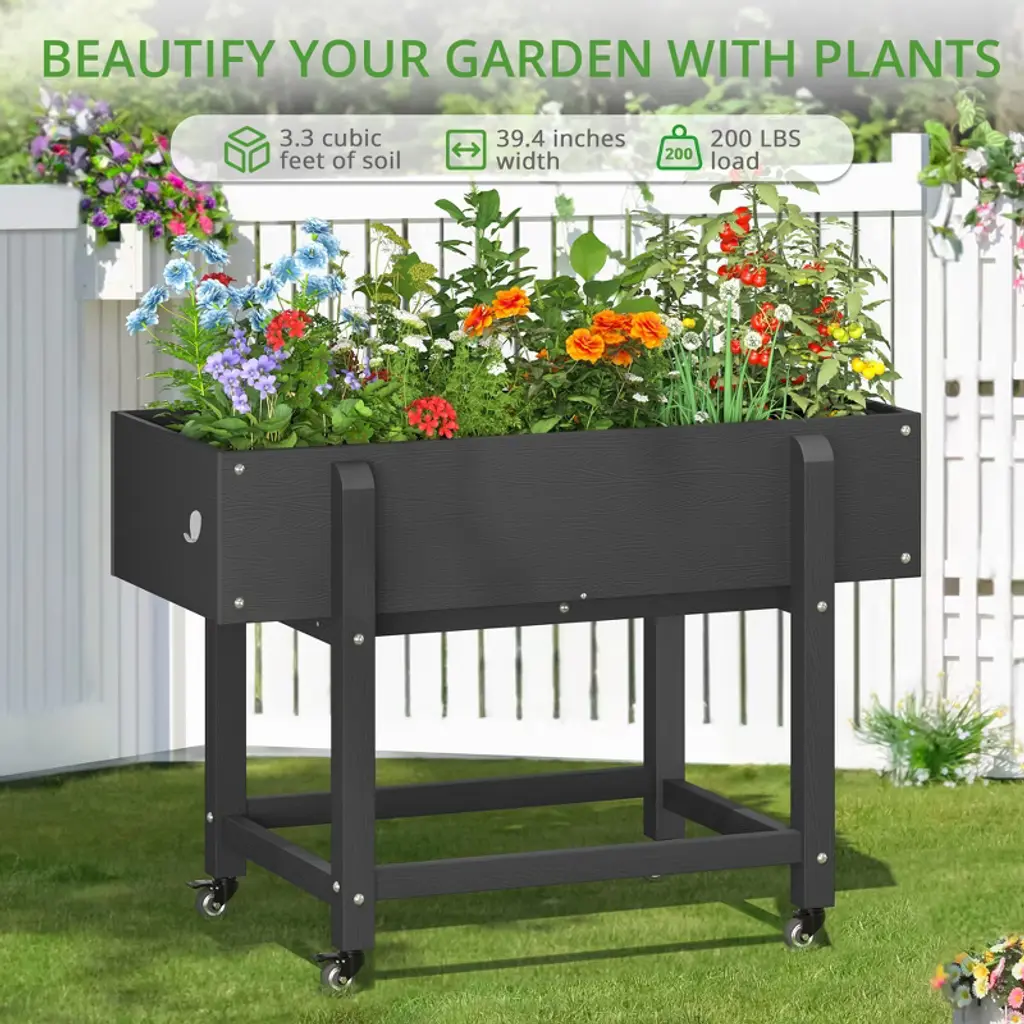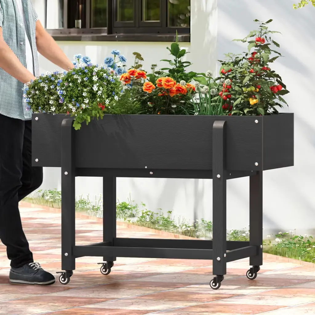 Arceso Raised Garden Bed With Wheels, Hdps Elevated Planter Box With Tools, Standing Growing Bed Herb Planter For Vegetable, Black