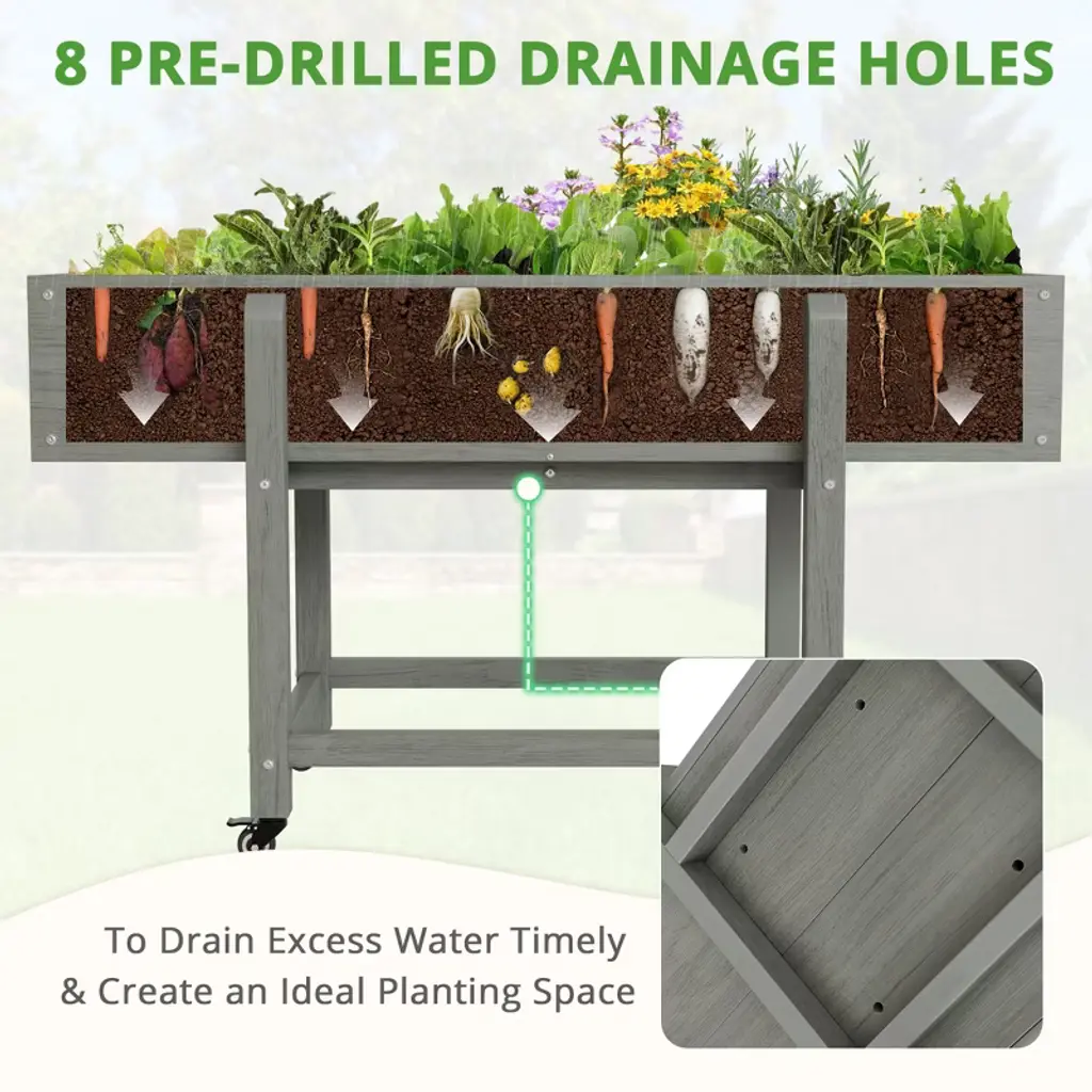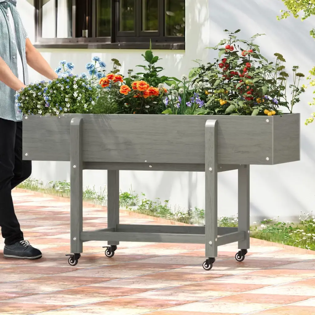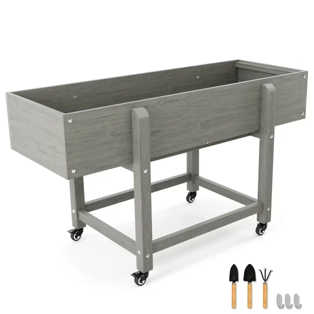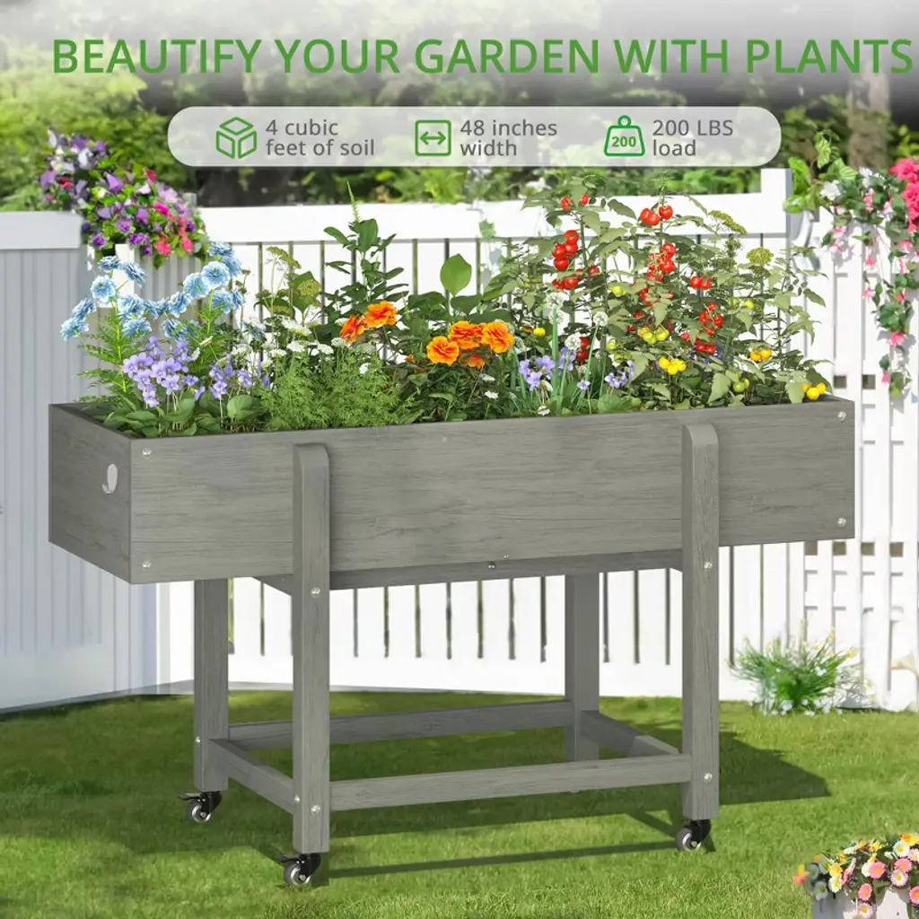 Arceso Raised Garden Bed With Wheels, Hdps Elevated Planter Box With Tools, Standing Growing Bed Herb Planter For Vegetable, Outdoor,oil Print Gray