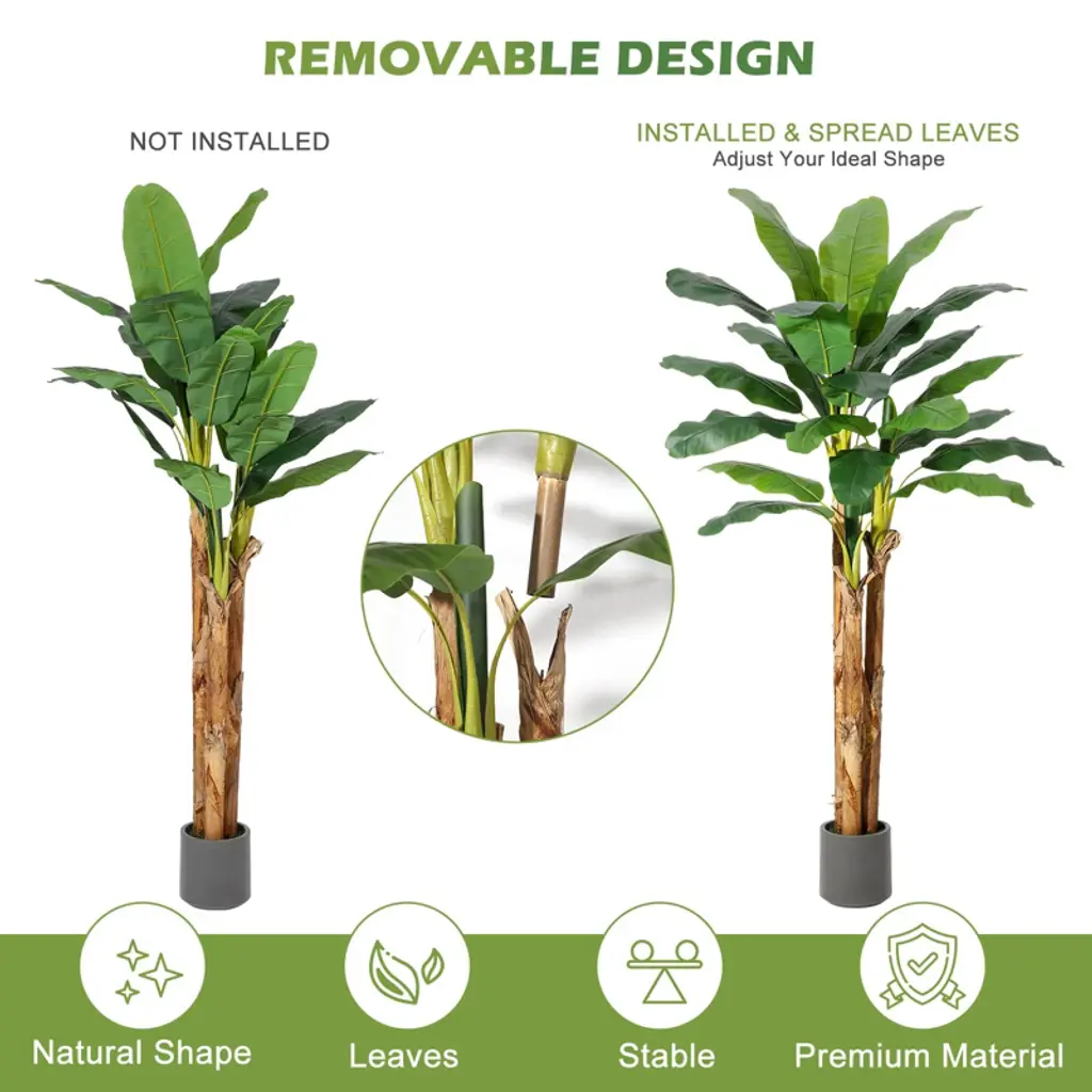 Artificial Banana Tree, 7Ft Faux Banana Tree With Grey Planter, Artificial Plants With 24 Faux Banana Leaves Plant For Home Office Decor
