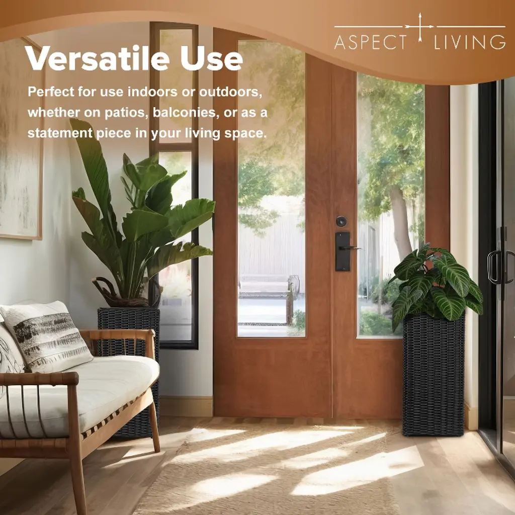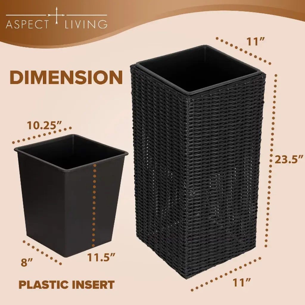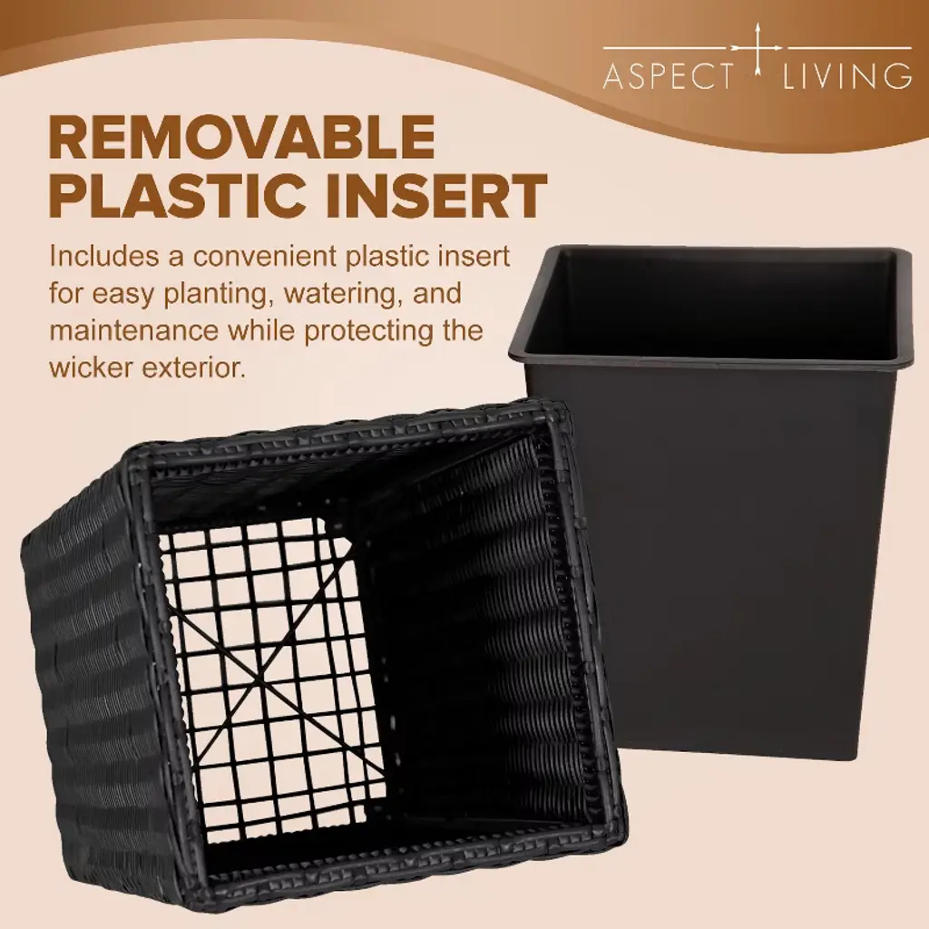 Aspect Living offers a rustic approach to adaptable outdoor furnishings. Our all-weather wicker planters in versatile black are perfect for a patio herb garden or any botanical accent to your living space. Bring personality and charm into your home with the Sierra Wicker Planters.