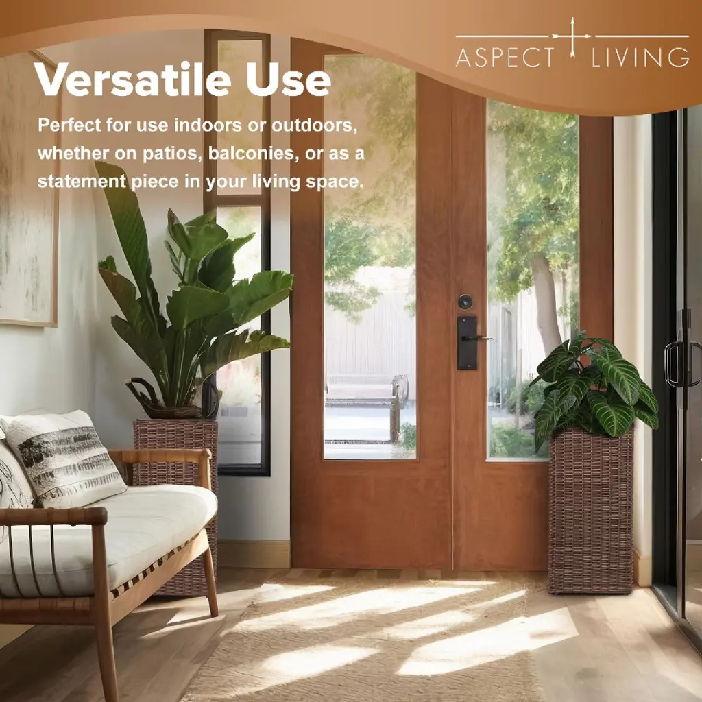Aspect Living offers a rustic approach to adaptable outdoor furnishings. Our all-weather wicker planters in a beautiful mocha finish are perfect for a patio herb garden or any botanical accent to your living space. Bring personality and charm into your home with the Sierra Wicker Planters.