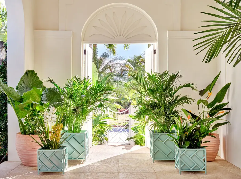 These weatherproof planters are made of ribbed terracotta and lightly distressed for a look that works well in any outdoor setting.