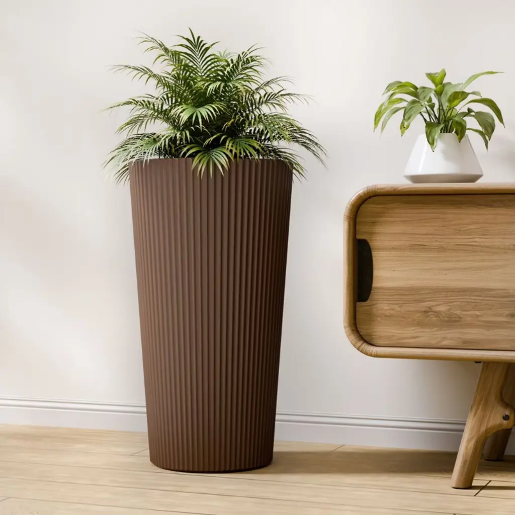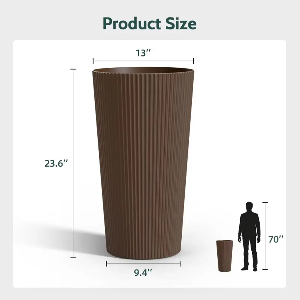 Azl1 Life Concept Planters City Flora Stylish 2Pcs Ribbed Plastic Tall Planters Ideal For Contemporary Design Fans And Gardeners, Brown, 13"*13"*23.6"