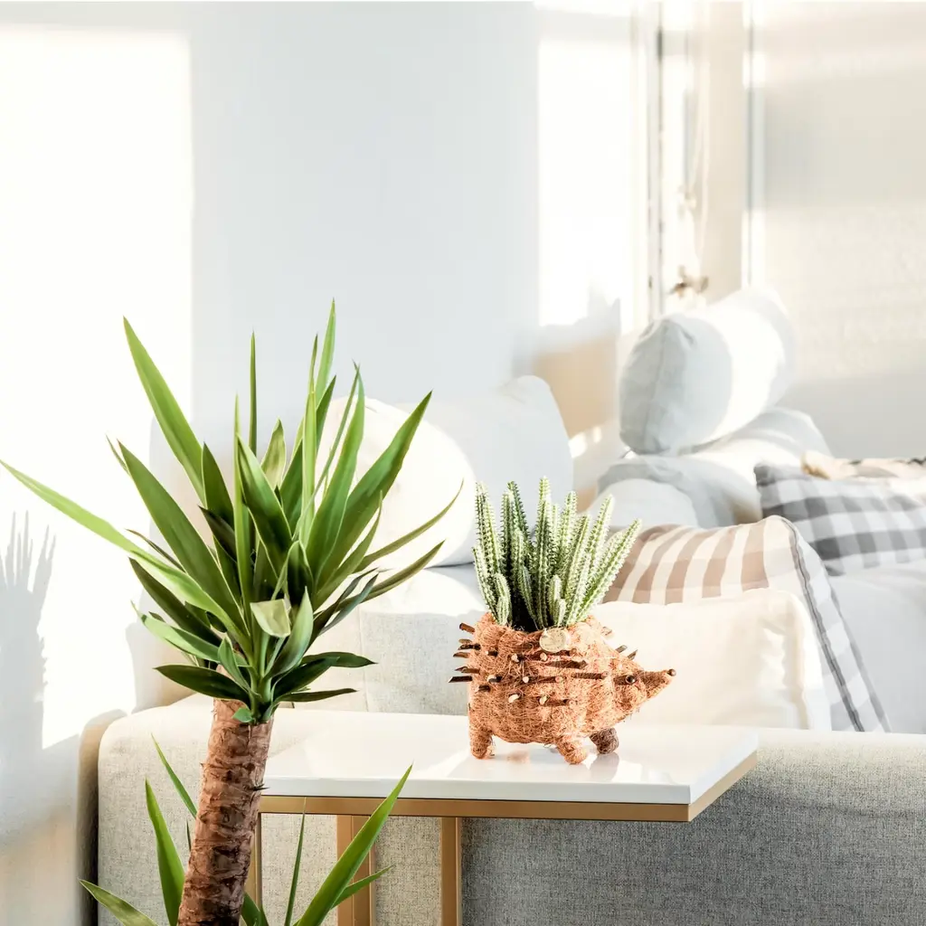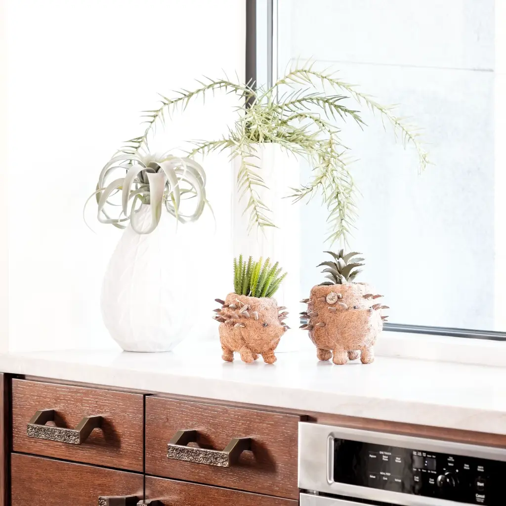 Add a touch of whimsy to your home with our Coco Coir Baby Hedgehog Planter. Handcrafted from natural coco coir, this tiny planter captures the charm of a baby hedgehog with its rounded body and gentle, curious expression. Perfect for succulents, cacti, or small indoor plants, it brings personality to any shelf, desk, or windowsill, and makes a delightful gift for animal lovers, plant enthusiasts, or anyone enchanted by nature’s small wonders - holiday-ready yet perfect year-round.Lightweight, eco-friendly, and full of character, this mini hedgehog planter adds a playful touch to any space.
