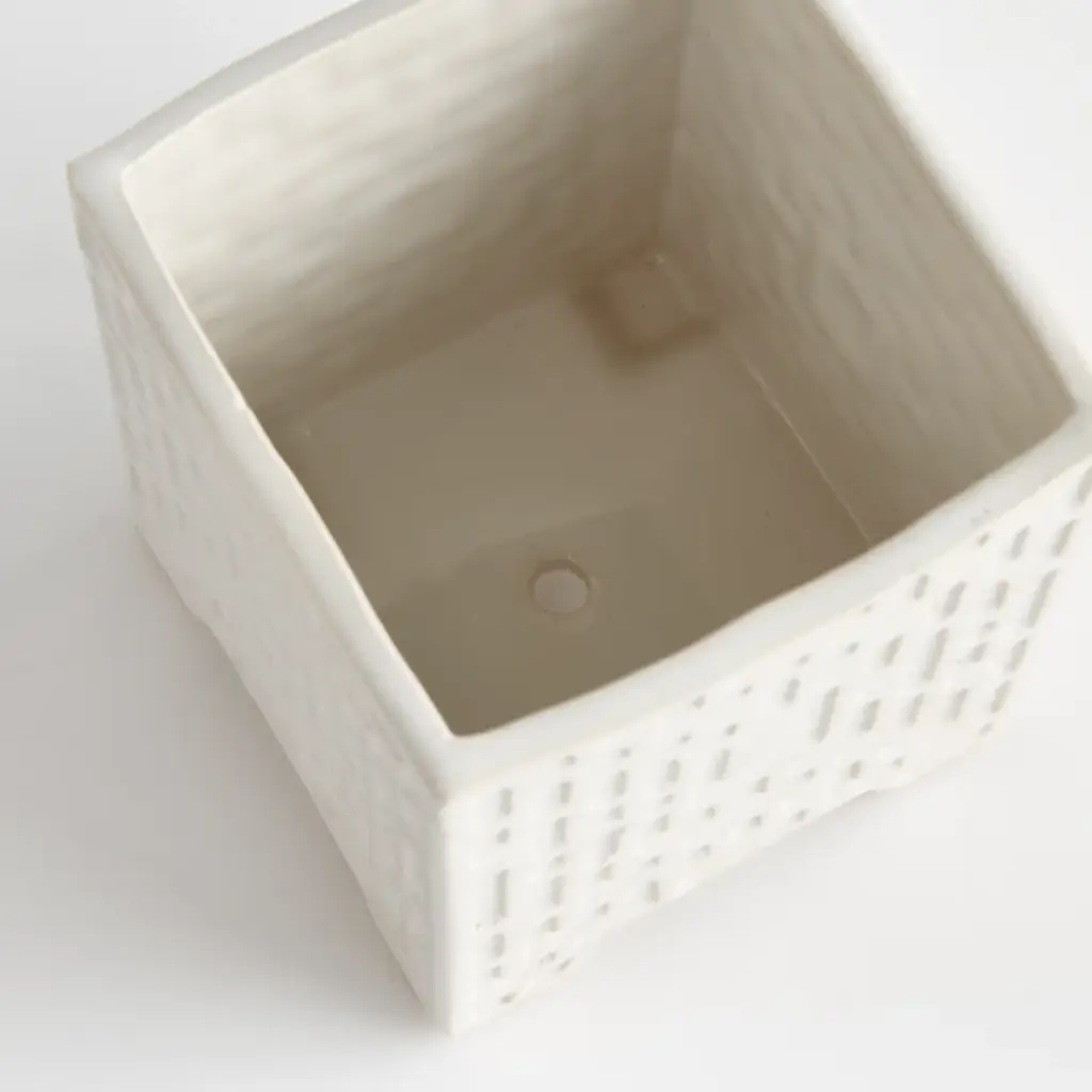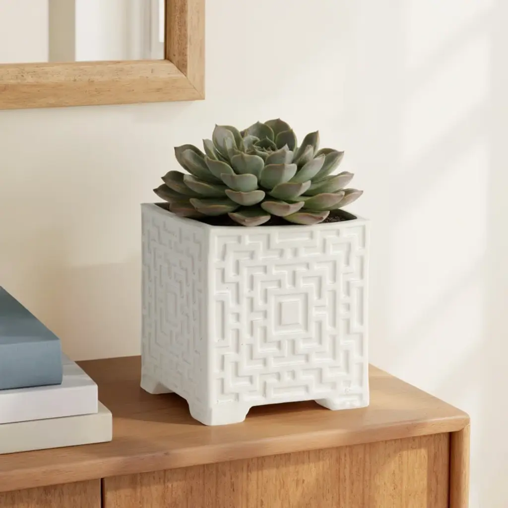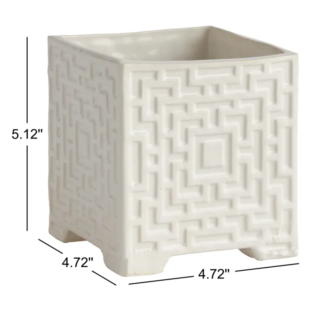This clean, white cachepot is made in traditional style. With unmistakable chinoiserie-inspired lattice details, it is sure to be an instant classic.