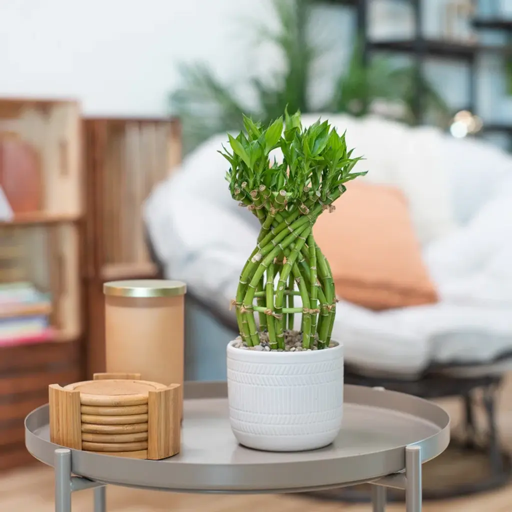 So easy to grow, Lucky bamboo is beautiful and brings luck. Grow in water or soil. Just insert stalks and watch them grow. Lucky bamboo is a wonderful gift plant that adds a bold note to indoor decor with its often intricately arranged stems. It's a slow-growing foliage houseplant that's easy to care for in a low or medium-light spot. You can make Lucky bamboo in an almost endless variety of arrangements, including heart shapes, twists, curls, and more. Lucky bamboo is the perfect plant for plant lovers with a busy lifestyle. Just open the box they are shipped in and place them in a vase with water. Or you can plant them in soil. Enjoy their Tropical beauty. Lucky bamboo adds Tropical beauty to any indoor decor. Lucky bamboo grows slowly, so it will retain its shape. These plants are versatile and adaptable! Plus, they accent any decor. Did you know that house plants remove toxins from the indoor air? The NASA clean air study concluded that houseplants promote better air quality in your home. The study by NASA found that houseplants remove chemical pollutants from the air. All plants help purify the air by also removing carbon dioxide and producing oxygen. Grow in low to medium light for best results. Keep Lucky bamboo growing in water. Change the water weekly to keep it fresh. If you plant the stalks in soil, keep them moist, but not wet. Lucky bamboo benefits from occasional feeding when grown in soil once Or twice a year. Lucky bamboo grows slowly so it won't need repotting for years. Enjoy your Lucky bamboo outdoors in warm weather. About the grower: Costa Farms is a third-generation family-run business stretching from South Florida to North Carolina, we have 5,500 hard-working employees who farm and cultivate a variety of beautiful plants that you can bring home today.