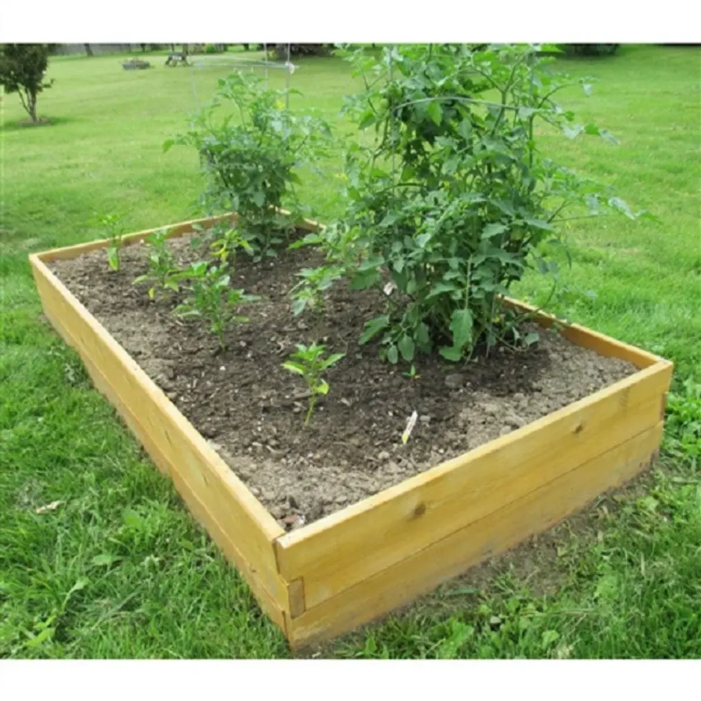 This Western Red Cedar Wood 3-Ft x 6-Ft Raised Garden Bed Planter Kit - Made in USA, is available in 2 sizes. Made from long lasting Western Red Cedar, a durable and naturally rot-resistant wood. Simple assembly in just minutes, the raised bed corners are half-lapped, with rods placed down through the assembly which keeps corners from working loose over time. Its also easy to stack the boards to make raised beds in many different heights if you choose with multiple units. Superior strength and quality with no screws or nails to rust over time or come loose from swelling and shrinking of the wood due to the elements of weather. The wood is all natural, no chemical treatment was applied. All boards are standard sturdy deck boards 1.25 x 6 in. surface with actual dimensions of 1.0 x 5.5 in., two boards stacked on top of each other give the raised bed its height of 11 inches.Features:Western Red Cedar Wood 3-Ft x 6-Ft Raised Garden Bed Planter Kit - Made in USARaised bed garden planterMade from long lasting Western Red CedarEasy assembly in minutes with no toolsSuperior quality, made in USAAll natural, no chemical treatment to the woodCountry of Origin USAMaterial WoodShape RectangleWarranty 5 Year ManufacturerWood Type Western Red CedarDimensions:3 x 6 ft x 11 H inches