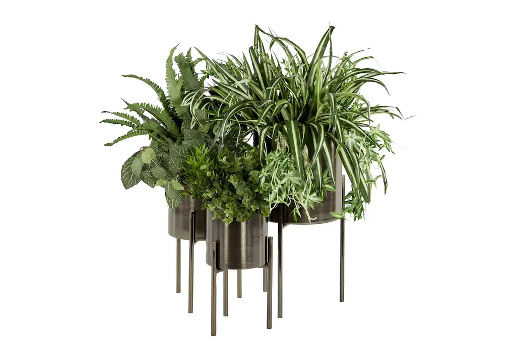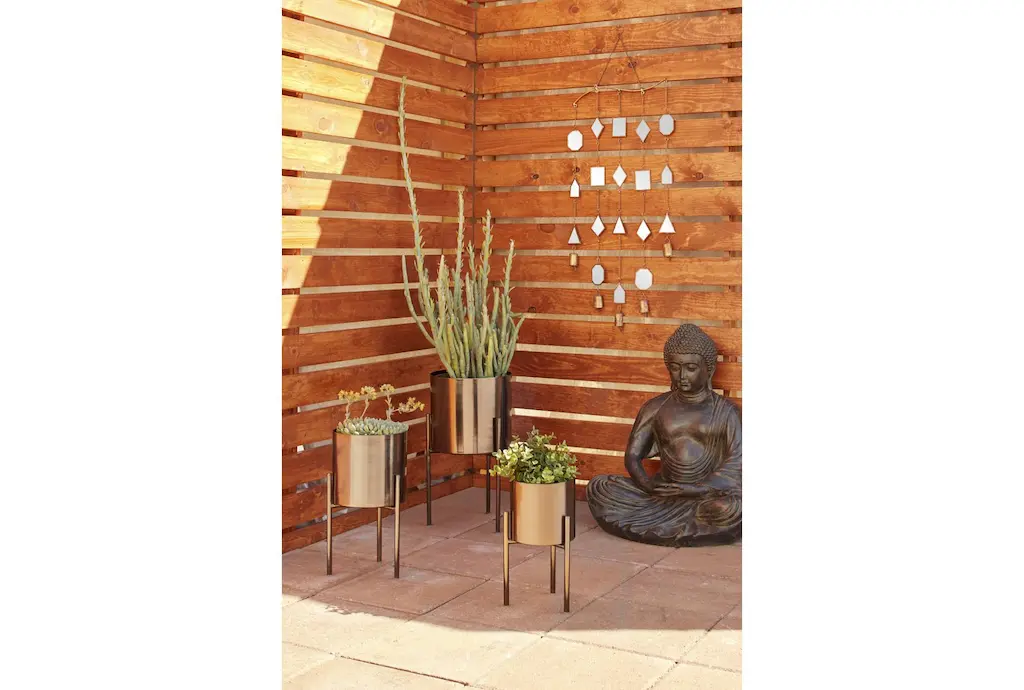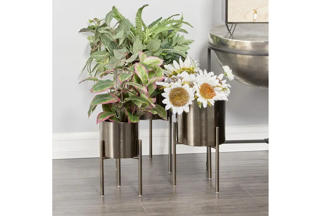 A neutral yet stunning metallic black finishes complements any pattern or color palette with a posh touch. This item ships in 1 carton. Please note that this item is for decorative use only. Suitable for indoor and outdoor use. This item ships fully assembled in one piece. Maximum weight limit is 5 lbs. Made in India. Planters do not have drainage holes but they are not watertight. This black colored plant pot comes as a set of 3. Contemporary style.