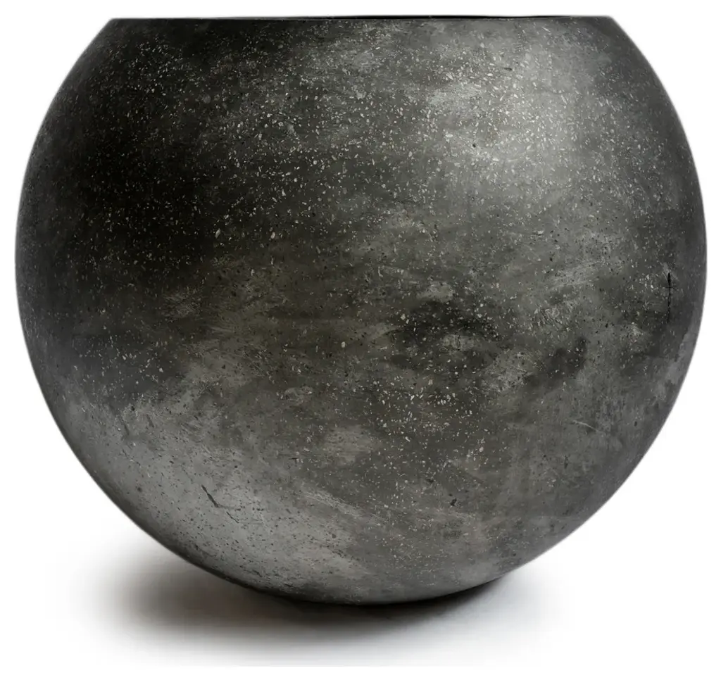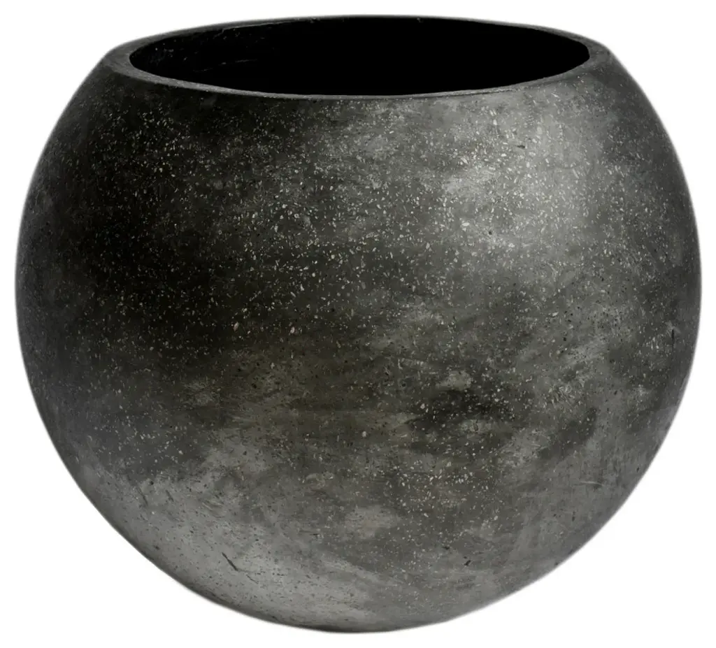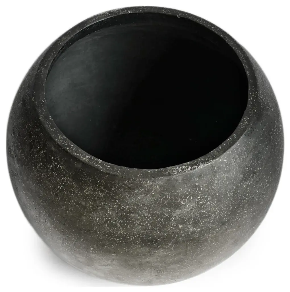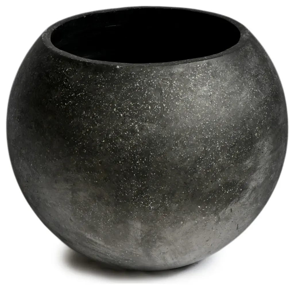 Stunning modern black cement terrazzo composite ball shaped planter. Great used indoors or out. Includes drainage hole. Each planter will have natural variations in terrazzo patterns and texture. This piece weighs approx. 75 lbs.