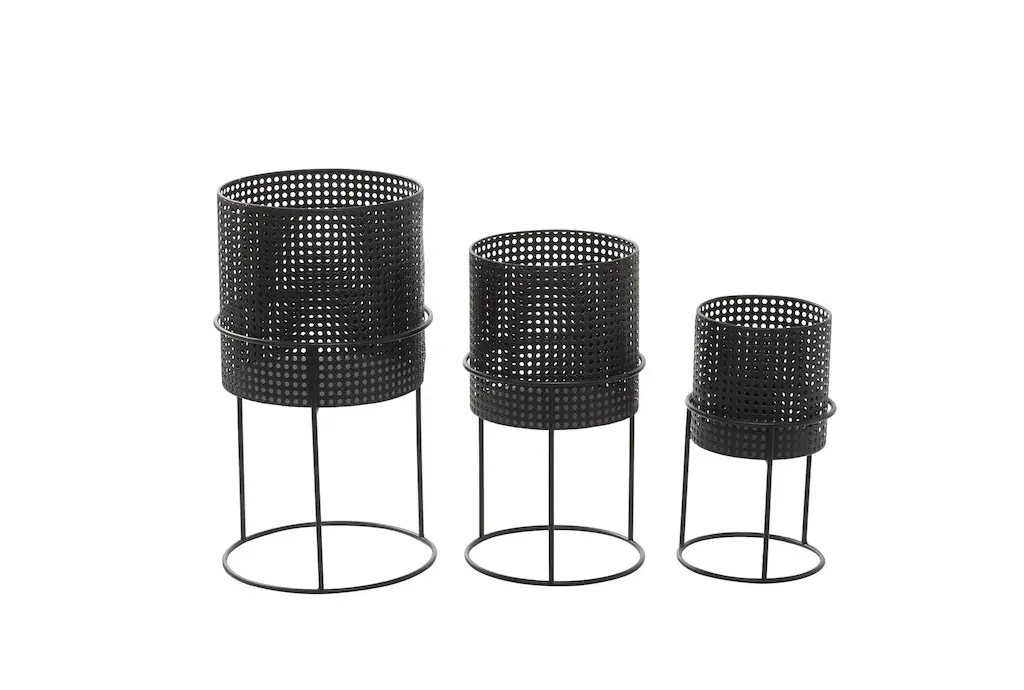 Black Iron Round Metal Planter Set Of 3 | Plant Stands | Tall | Drainage Holes