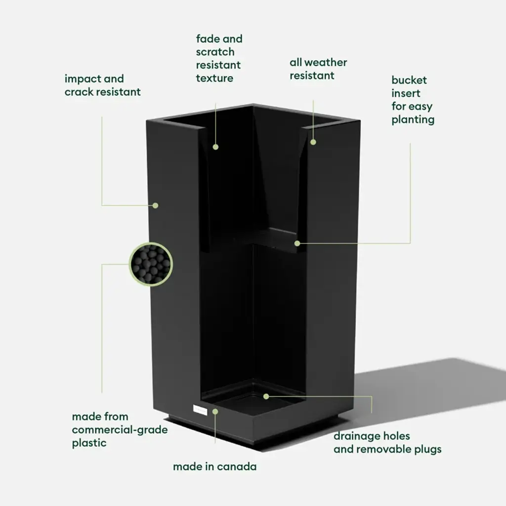Upgrade your indoor or outdoor space with this versatile square planter. Made from weather and UV-resistant plastic, it's designed to withstand the elements while keeping your plants happy and healthy. The large container capacity provides ample room for your favorite greenery, and the built-in drainage holes with drain plug ensure proper moisture management. Plus, it's easy to maintain – just wipe clean with a dry cloth. Bring a touch of modern flair to your home or office with this practical and attractive planter.
