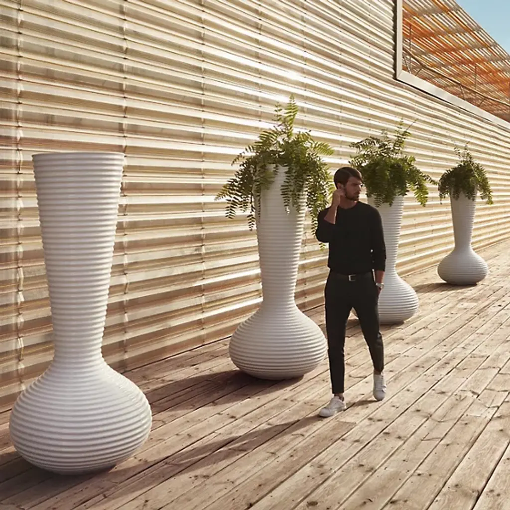 Eugeni Quitllet combines technology and nature by creating this beautiful Bloom Planter. Made of polyethylene resin, highly durable and makes up the genetic profile of the chair, giving it the ability to tackle the toughest weather conditions without affecting looks, quality, or functionality. Enjoy the structure and built of this unique planter by Vondom, watch it light by night and bloom buds by day.