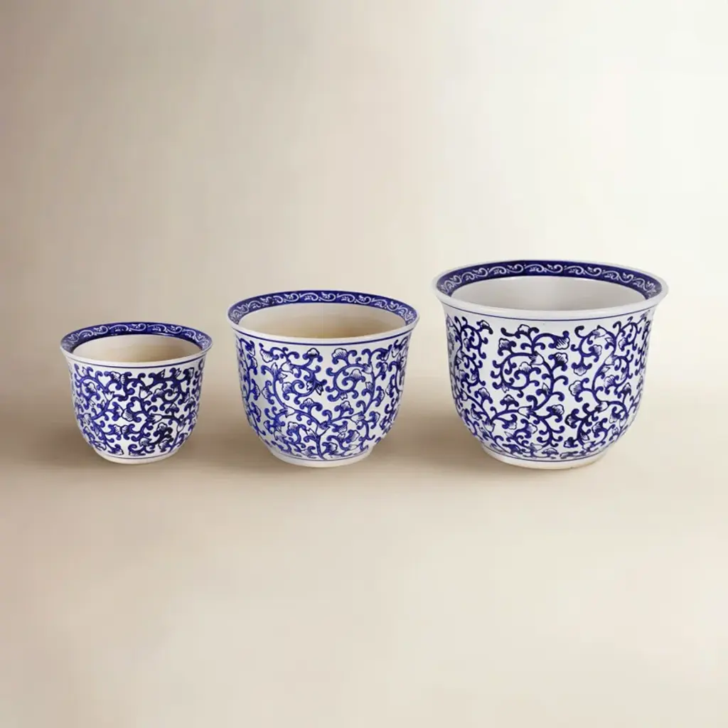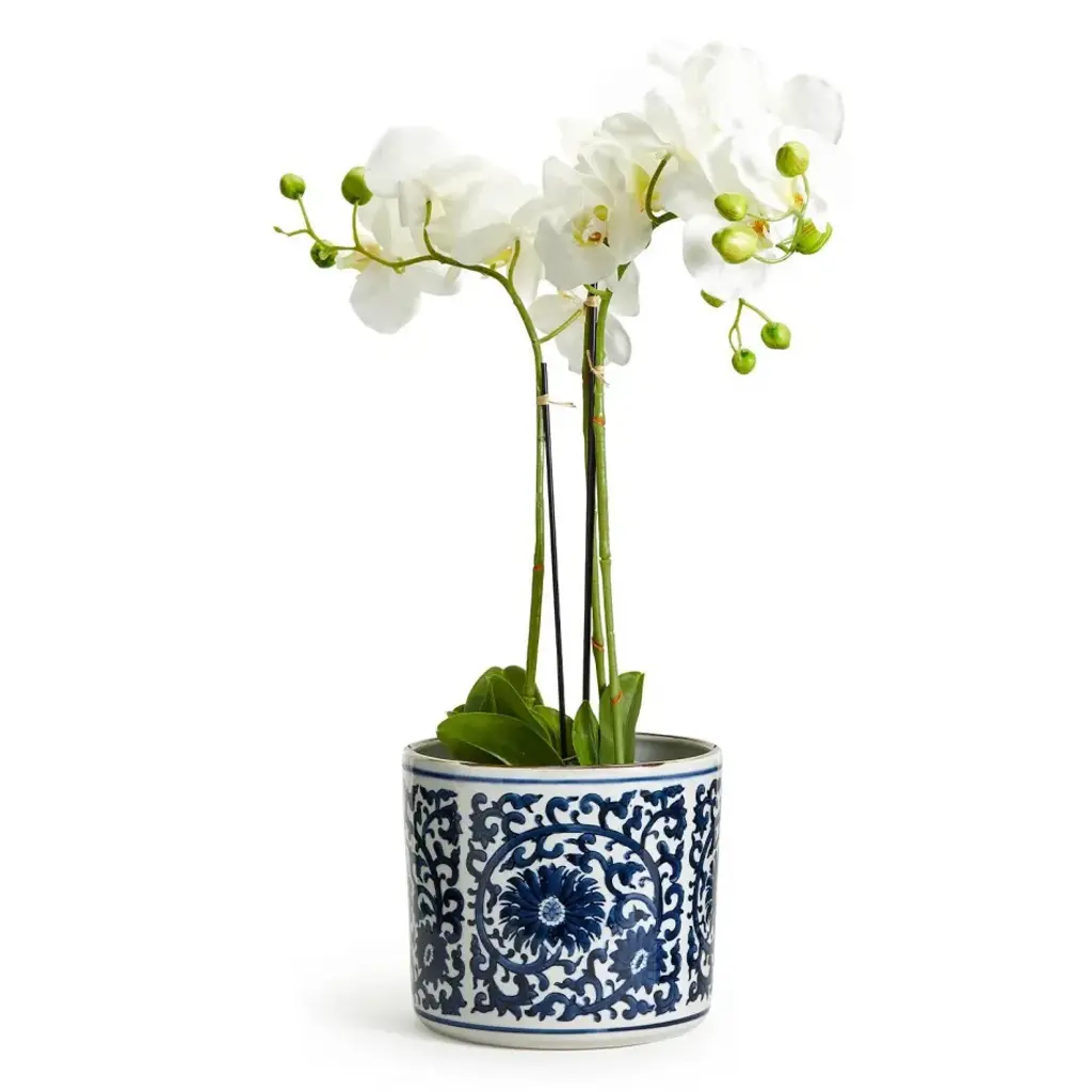 Inspired by designs from the ancient Ming and Qing dynasties, this exquisite porcelain design accentuates the beauty of your favorite plant. Its lotus pattern is hand-painted in soft blue strokes, making it just as lovely as a stand-alone work of art.