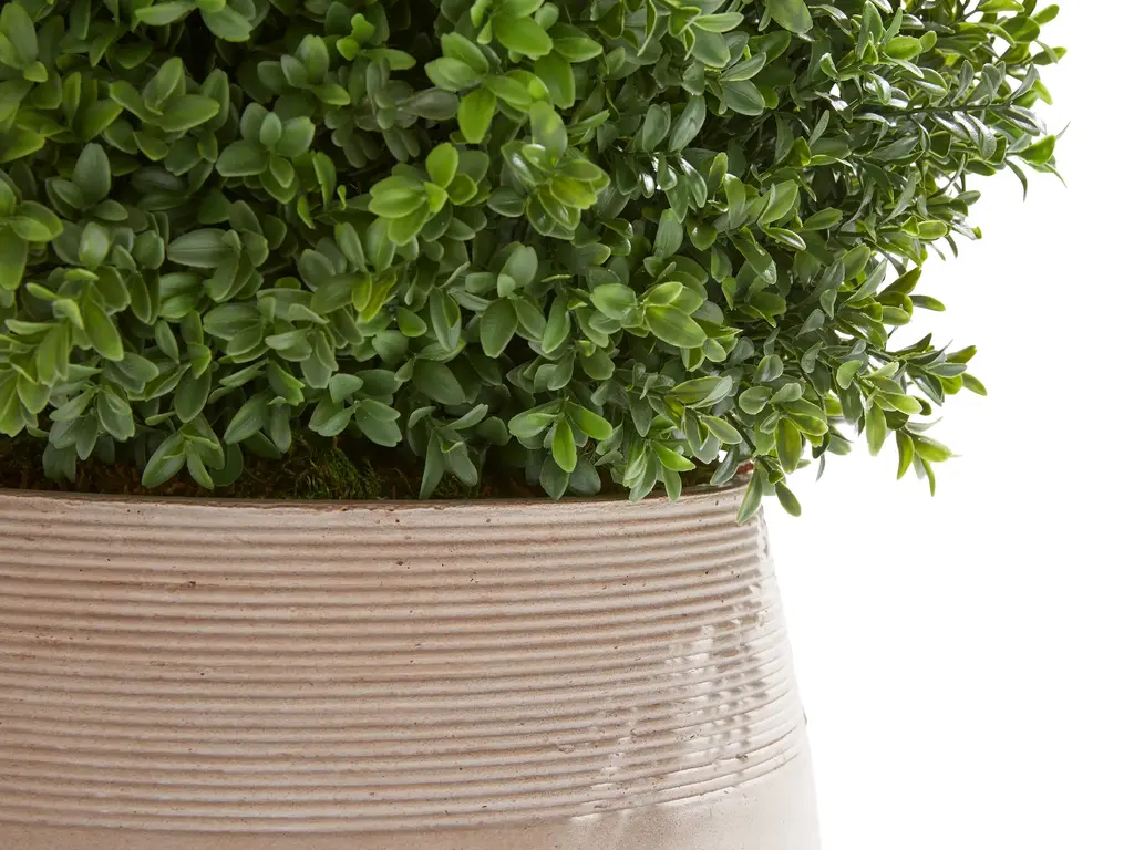 All the beauty of a real boxwood, with none of the grow time or pruning required. Our faux boxwoods are full and plush with pliable, natural-looking shaded leaves that are UV-protected to retain their color in the sun and rain. Each one is nestled inside a fitted resin planter made to complement the greenery’s individual shades.