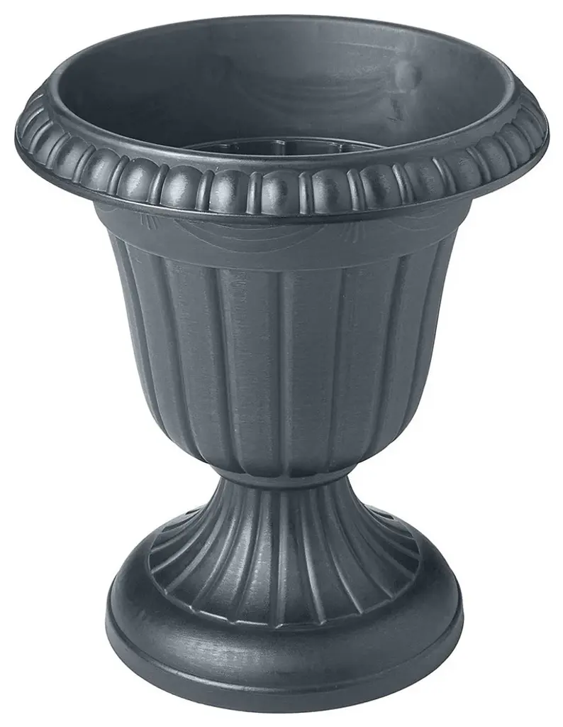 Showcase your favorite flowers and greenery in the elegant, ecofriendly Bristol Urn Planter. Made from a mix of recycled polymer, stone powder, and wood dust, this black urn is lightweight, weather-resistant, and durable. Its carved leaf and circle designs give it a traditional feel.