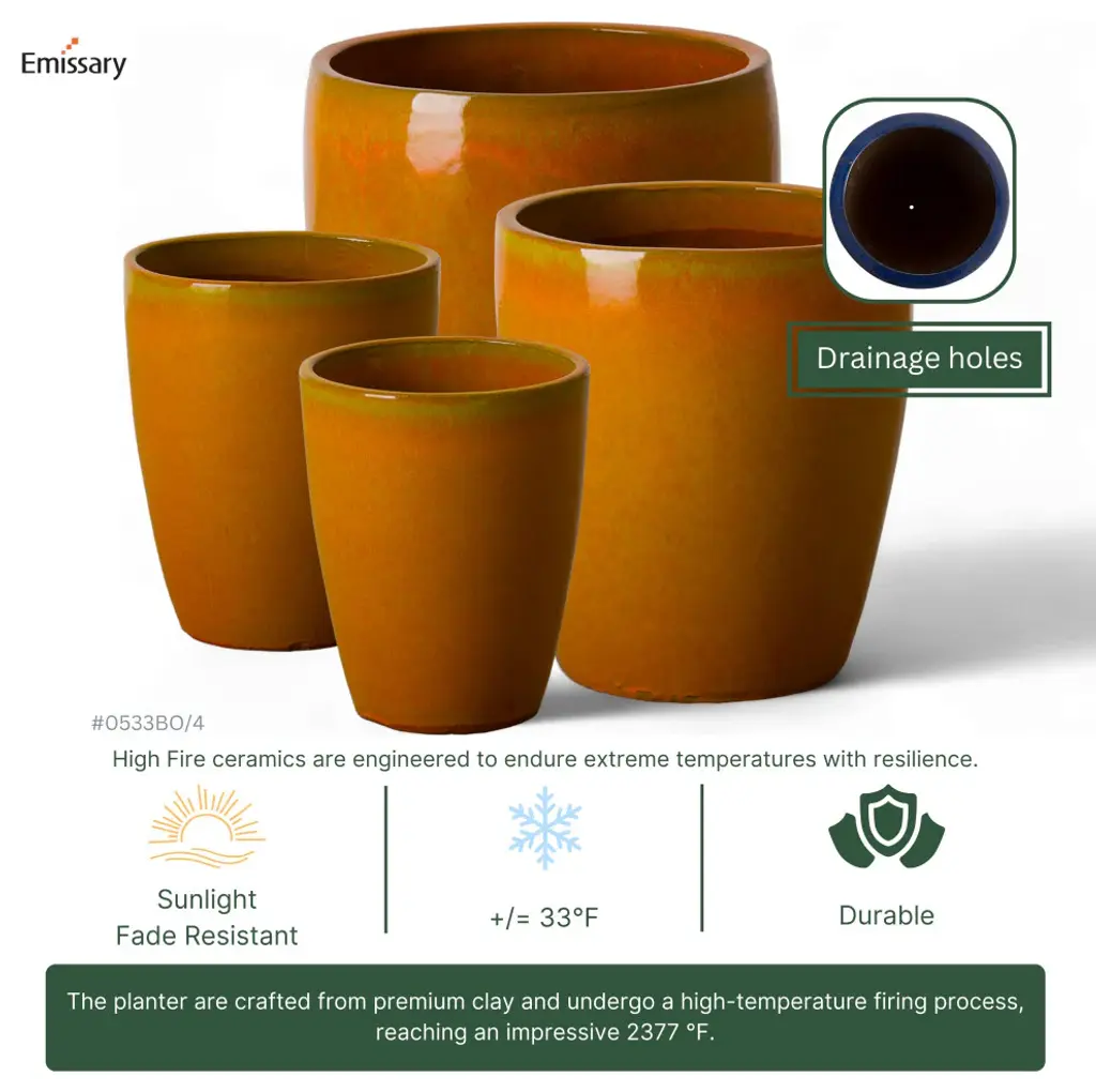 Bullet planter, this planter is crafted of ceramic and finished with burnt orang glazed. Suitable for outdoor and indoor use. Adds color and texture to your home and garden