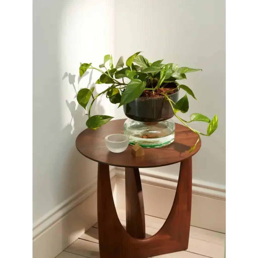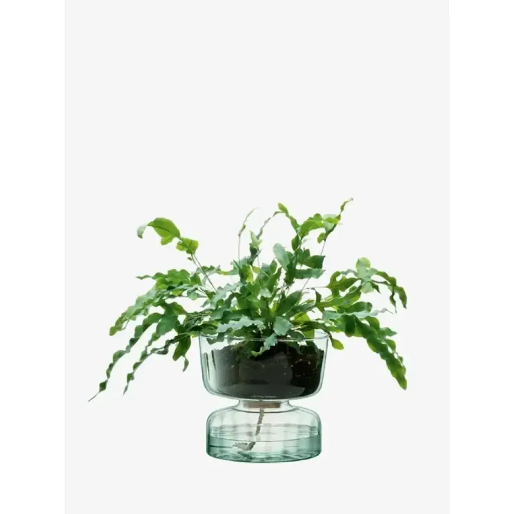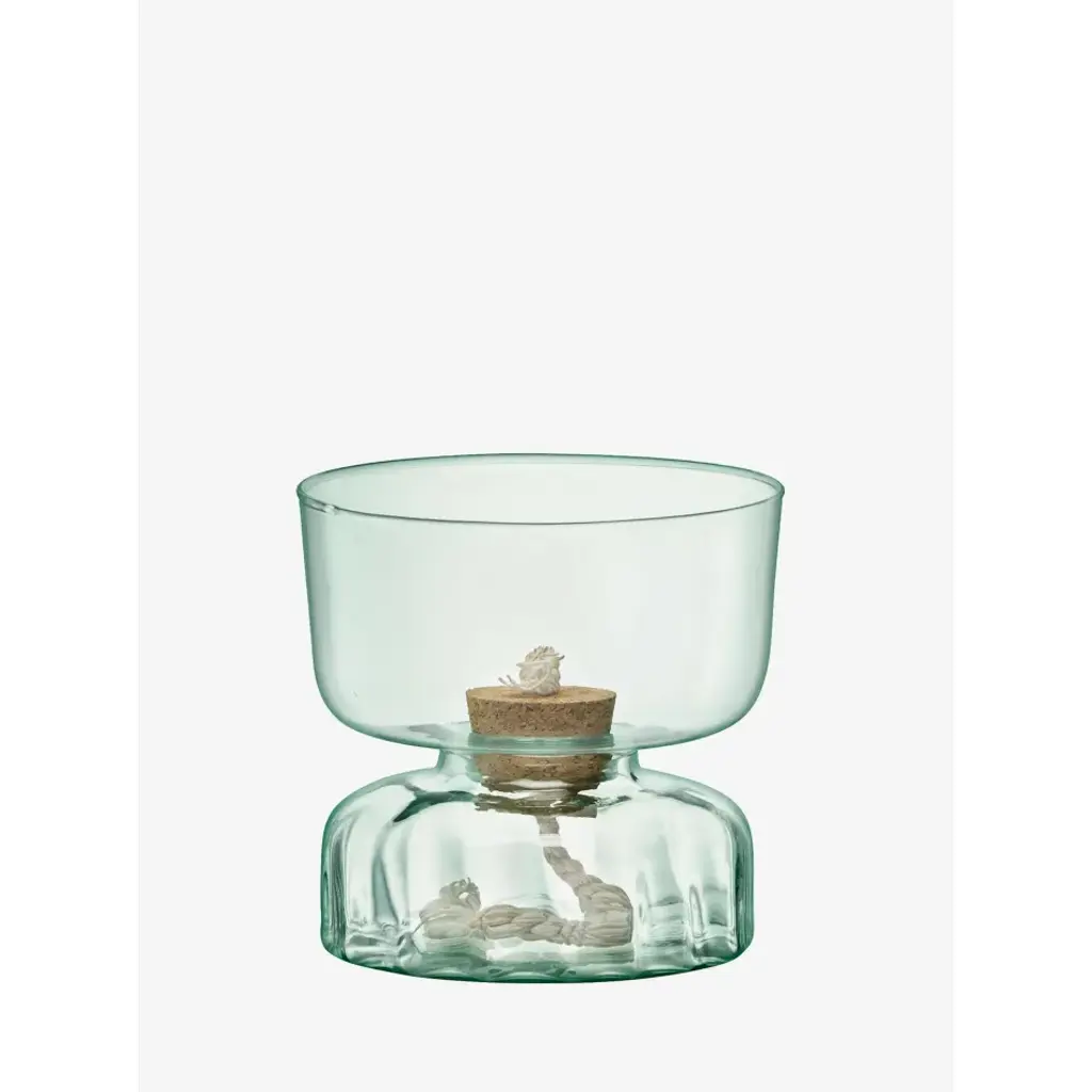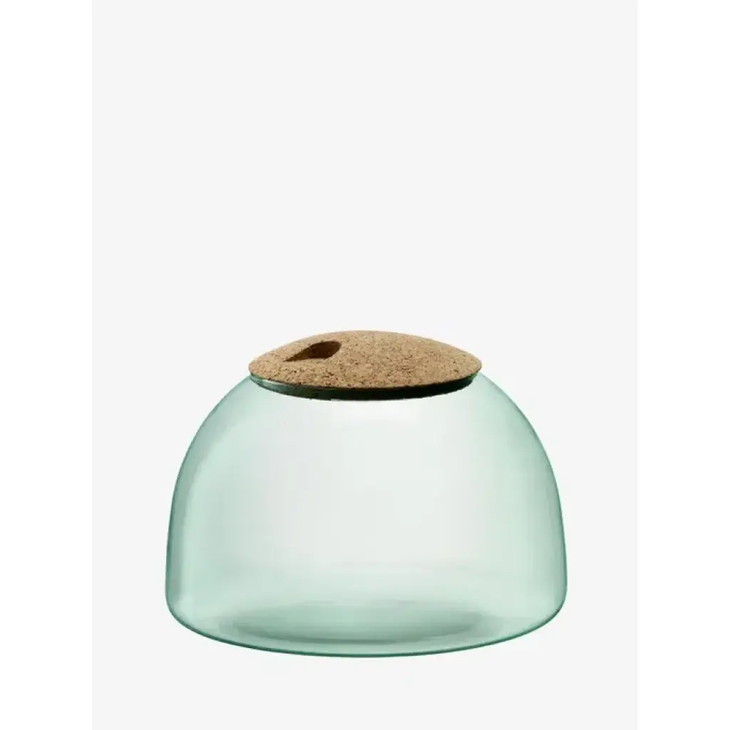 A self-watering planter inspired by the Eden project’s biospheres and focus on sustainability. Mouthblown from recycled glass and fitted with a sustainably-sourced removable cork bung. Fill the lower compartment with water and the top compartment with soil and plants. The cord between the two layers will carry water to the soil.