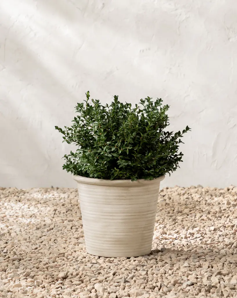 With textural details in a tapered design, the Canton Ceramic Planter is an updated take on the traditional planter. Made from ceramic in a white wash finish, this planter has a rustic yet contemporary feel.