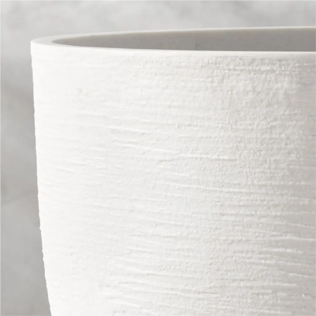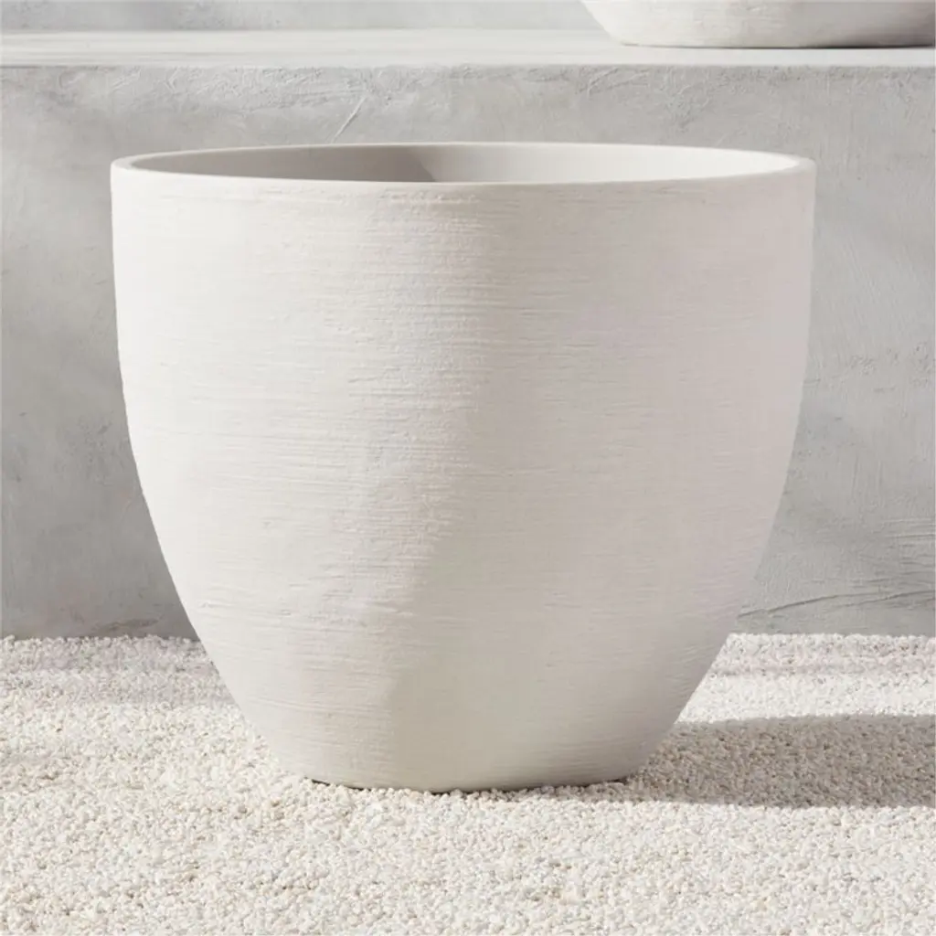 Planter sets a sleek spot for greenery to thrive. Made of a mix of resin and stone, then finished in warm white, planter sets modern roots in any outdoorscape. CB2 exclusive.