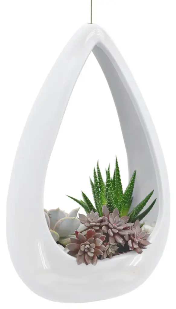 Arcadia Garden Products Cone Air Planters are a unique and aesthetic way to grow your delicate air plants, succulents or cactus. They make great small item organizers such as candy, school and office supplies. These come ready to hang making an easy addition inside or outside. A perfect accessory to the patio, the garden, or for fresh herbs in the kitchen.INDOOR/OUTDOOR: Designed using a high-quality ceramic, perfect for indoor or outdoor useHARDWARE INCLUDED: Include durable wire hangerCREATE: Create a hanging garden with cactus, succulents or small herbsORGANIZE: Great for organizing office supplies, toiletries and other smaller itemsSize: 8.5"x5.25" | Material: Ceramic | Weather Resistant | Plants Not Included