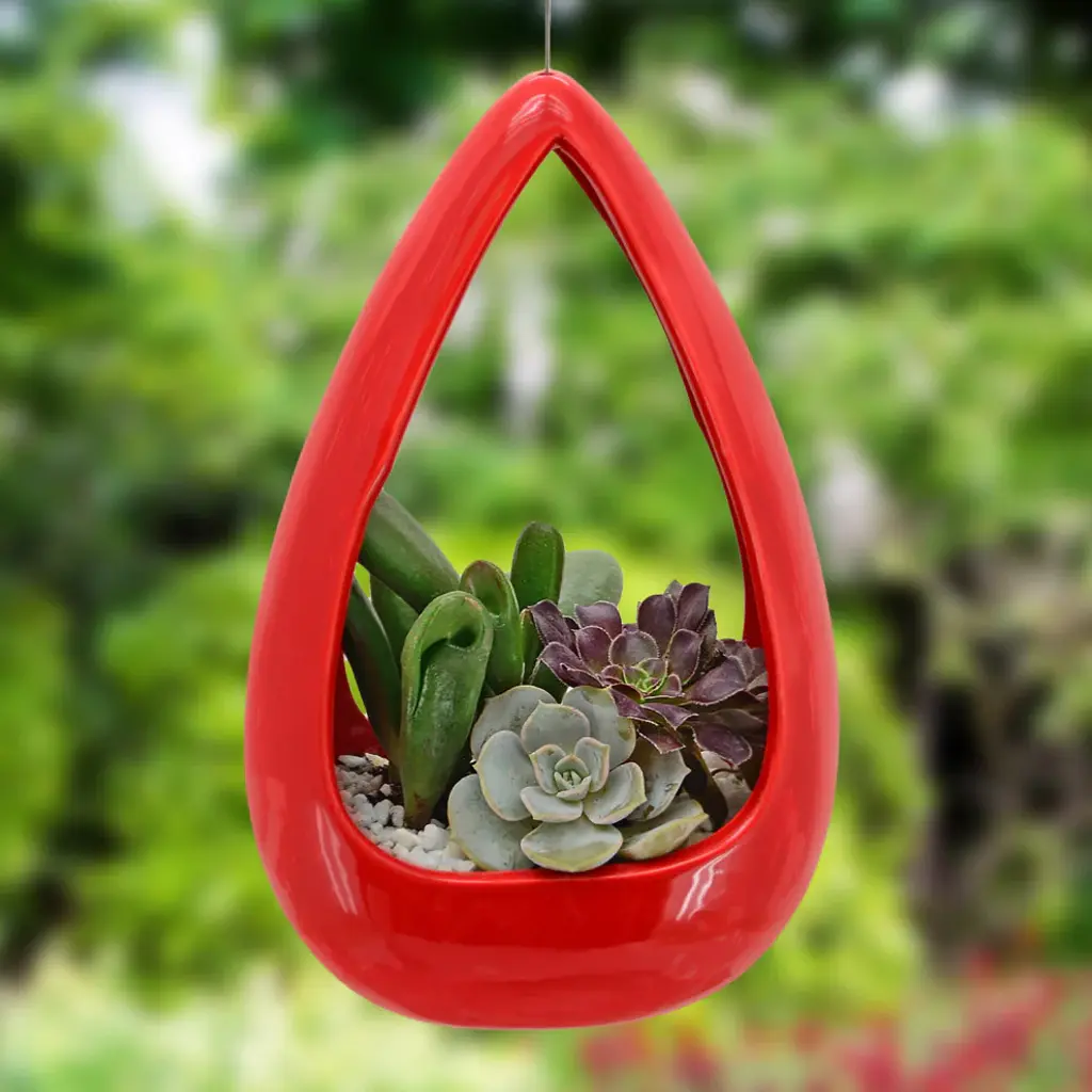 Ceramic Air Planter, Cone Style, 8.5x5.25", Red