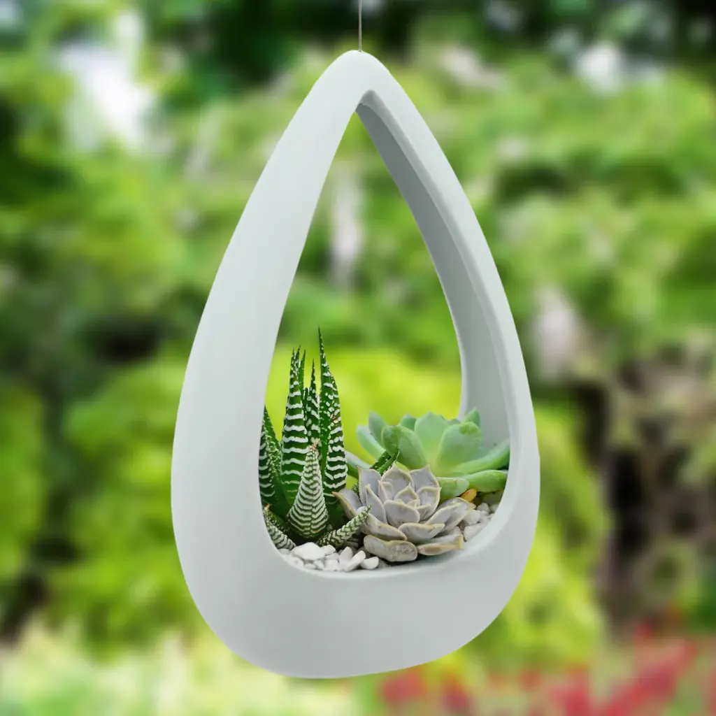 Arcadia Garden Products Cone Air Planters are a unique and aesthetic way to grow your delicate air plants, succulents or cactus. They make great small item organizers such as candy, school and office supplies. These come ready to hang making an easy addition inside or outside. A perfect accessory to the patio, the garden, or for fresh herbs in the kitchen.INDOOR/OUTDOOR: Designed using a high-quality ceramic, perfect for indoor or outdoor useHARDWARE INCLUDED: Include durable wire hangerCREATE: Create a hanging garden with cactus, succulents or small herbsORGANIZE: Great for organizing office supplies, toiletries and other smaller itemsSize: 8.5"x5.25" | Material: Ceramic | Weather Resistant | Plants Not Included