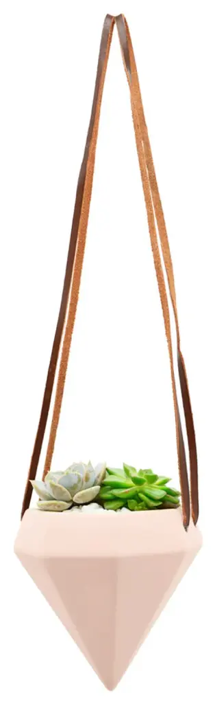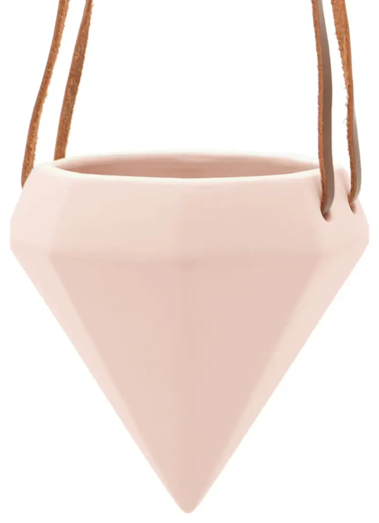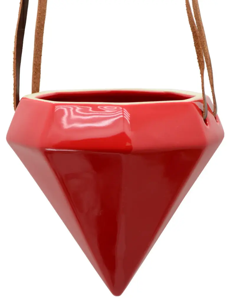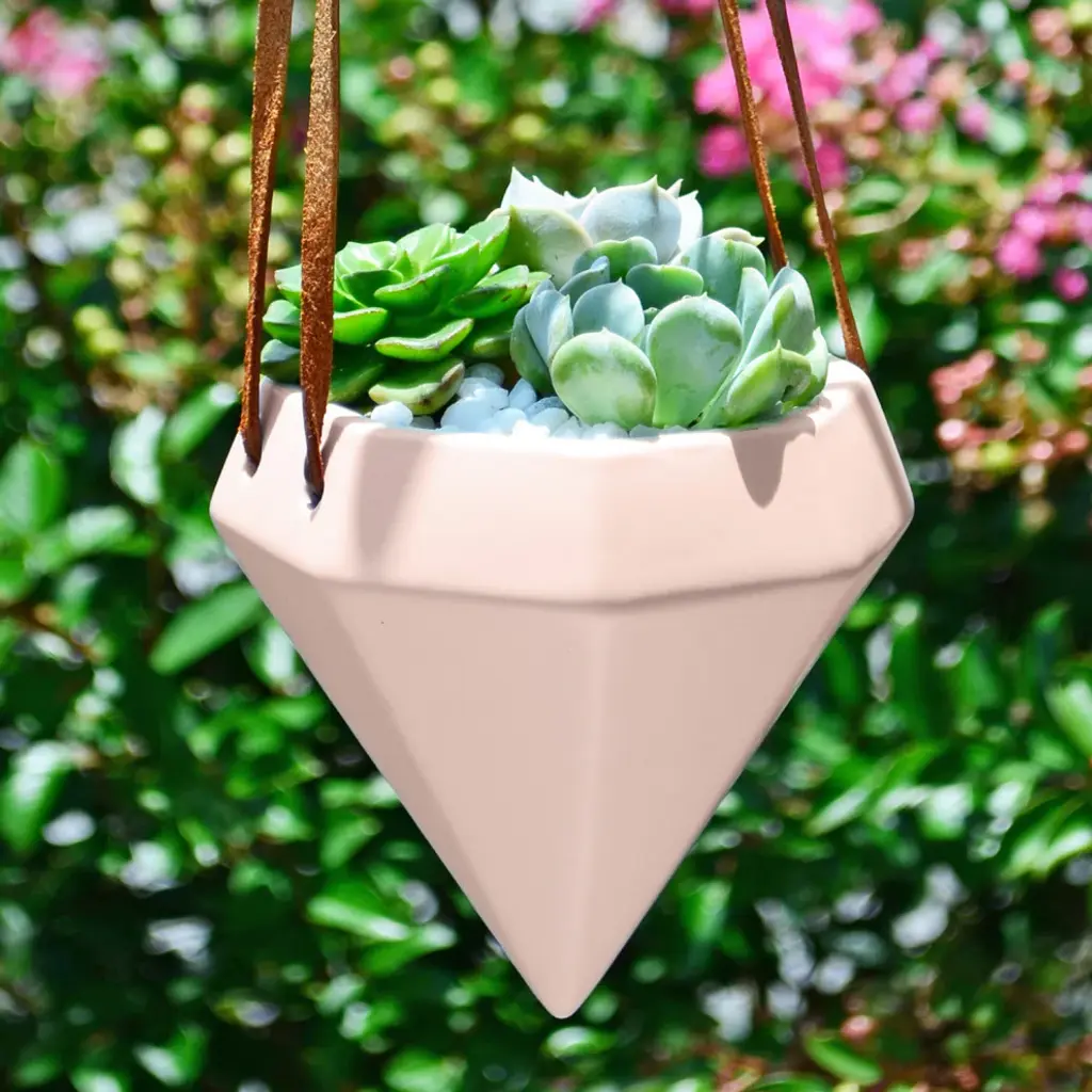 Arcadia Garden Products Diamond Air Planters are a unique and aesthetic way to grow your delicate air plants, succulents or cactus. They make great small item organizers such as candy, school and office supplies. These come ready to hang making an easy addition inside or outside. A perfect accessory to the patio, the garden, or for fresh herbs in the kitchen.INDOOR/OUTDOOR: Designed using a high-quality ceramic, perfect for indoor or outdoor useHARDWARE INCLUDED: Include durable leather straps for hangingCREATE: Create a hanging garden with cactus, succulents or small herbsORGANIZE: Great for organizing office supplies, toiletries and other smaller itemsSize: 4.5"x4.5" | Material: Ceramic | Weather Resistant | Plants Not Included