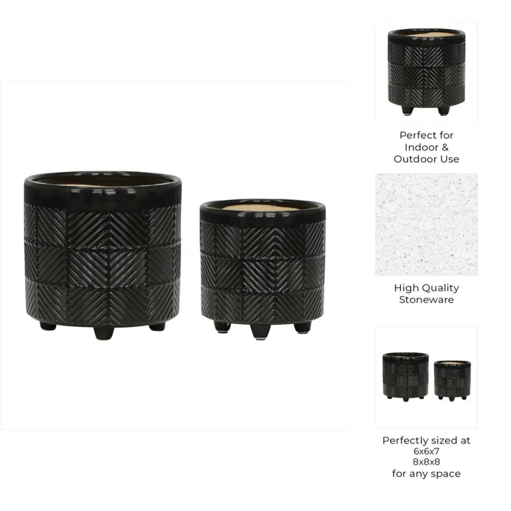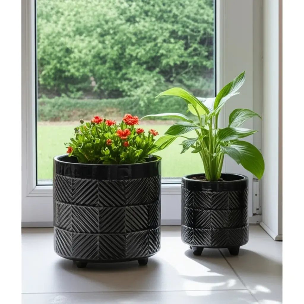 Ceramic Footed Planter Set Of 2 Indoor And Outdoor
