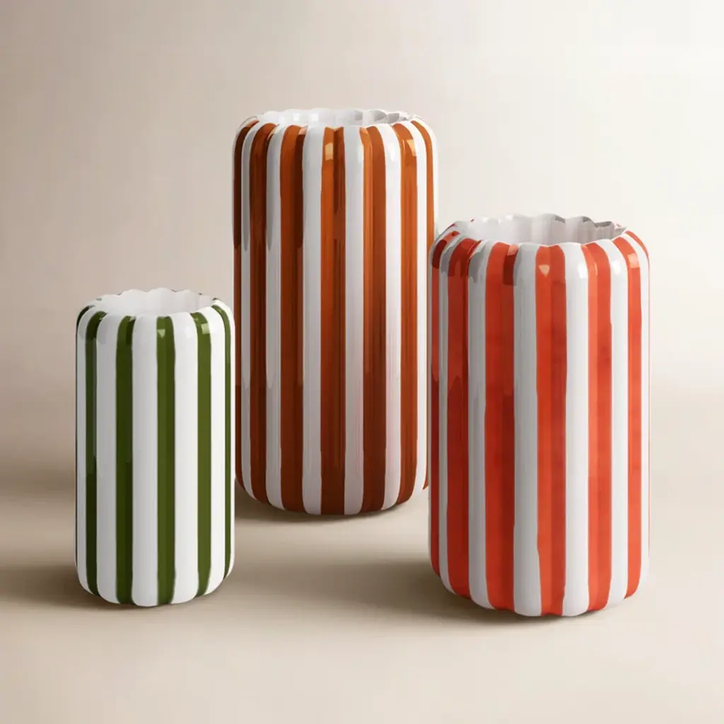 The only thing missing from the peppermint pot is a bunch of candy canes to set the holiday mood. Hand-painted with vertical pink & red stripes, this festive pot is perfect for florals or a drop-in plant like a small poinsettia or Christmas cactus.