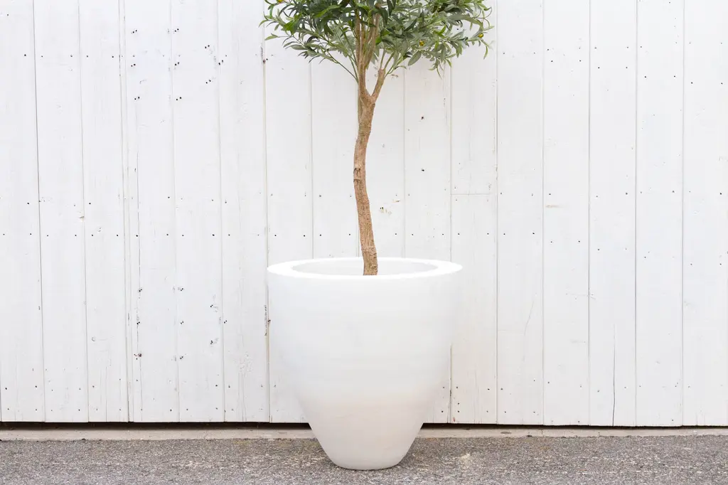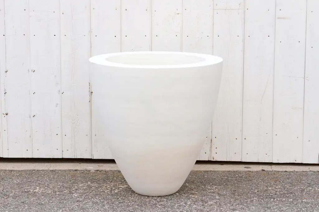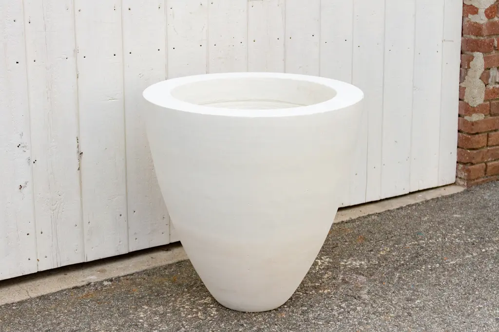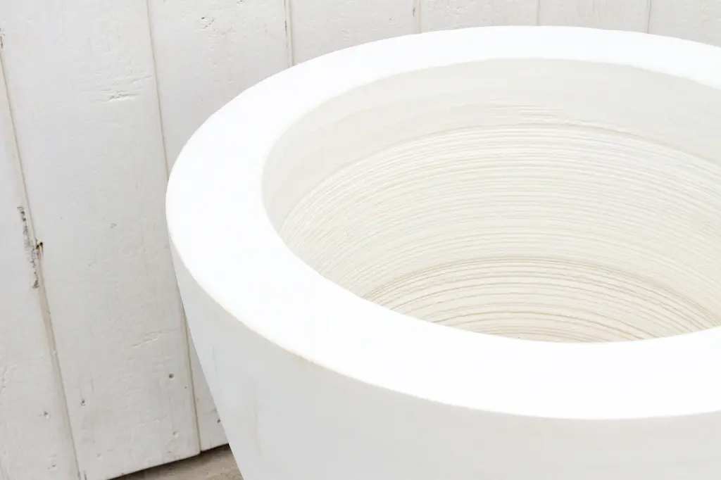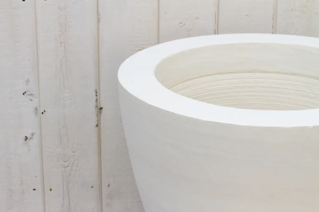 A garden planter handcrafted from Karoli sandstone. This planter features an elegant and smooth rounded shape. The simple design blends with any other outdoor/indoor decor. This planter does not have a drainage hole at the bottom of its base.