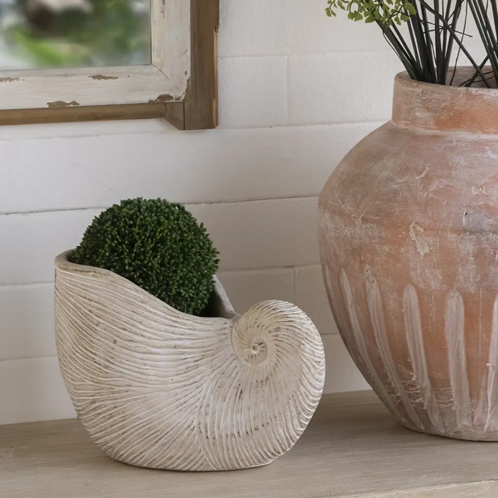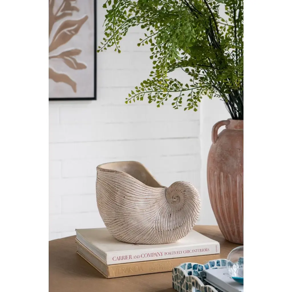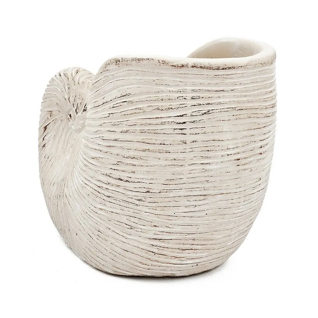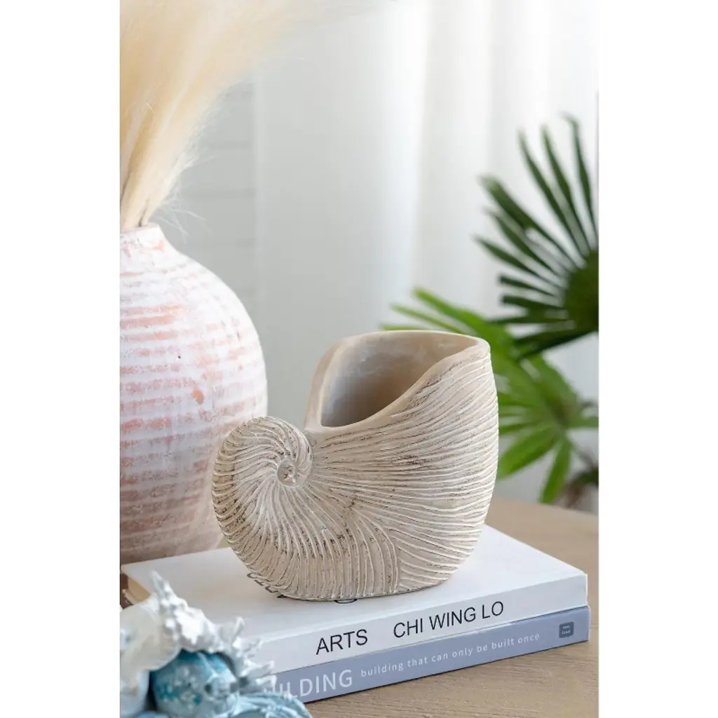 Chery Life 8.5x5.5x6.3" Cement Nautilus Shell Planter With Textured Beige Finish
