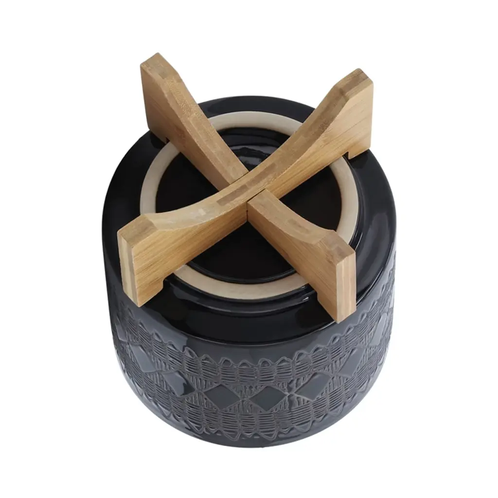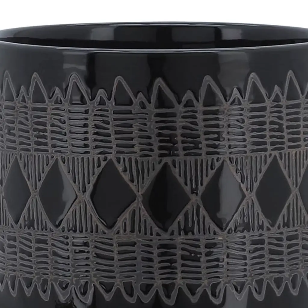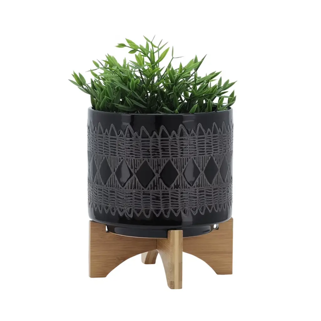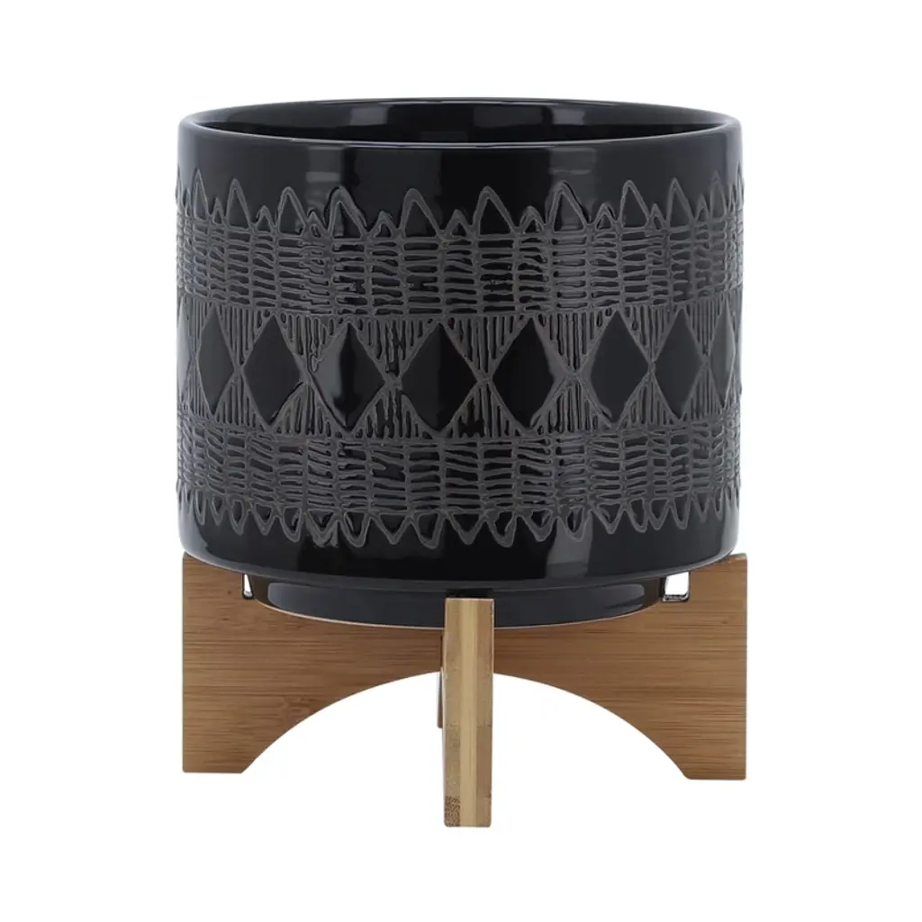 Chery Life 8" Ceramic Planter On Wooden Stand, Black