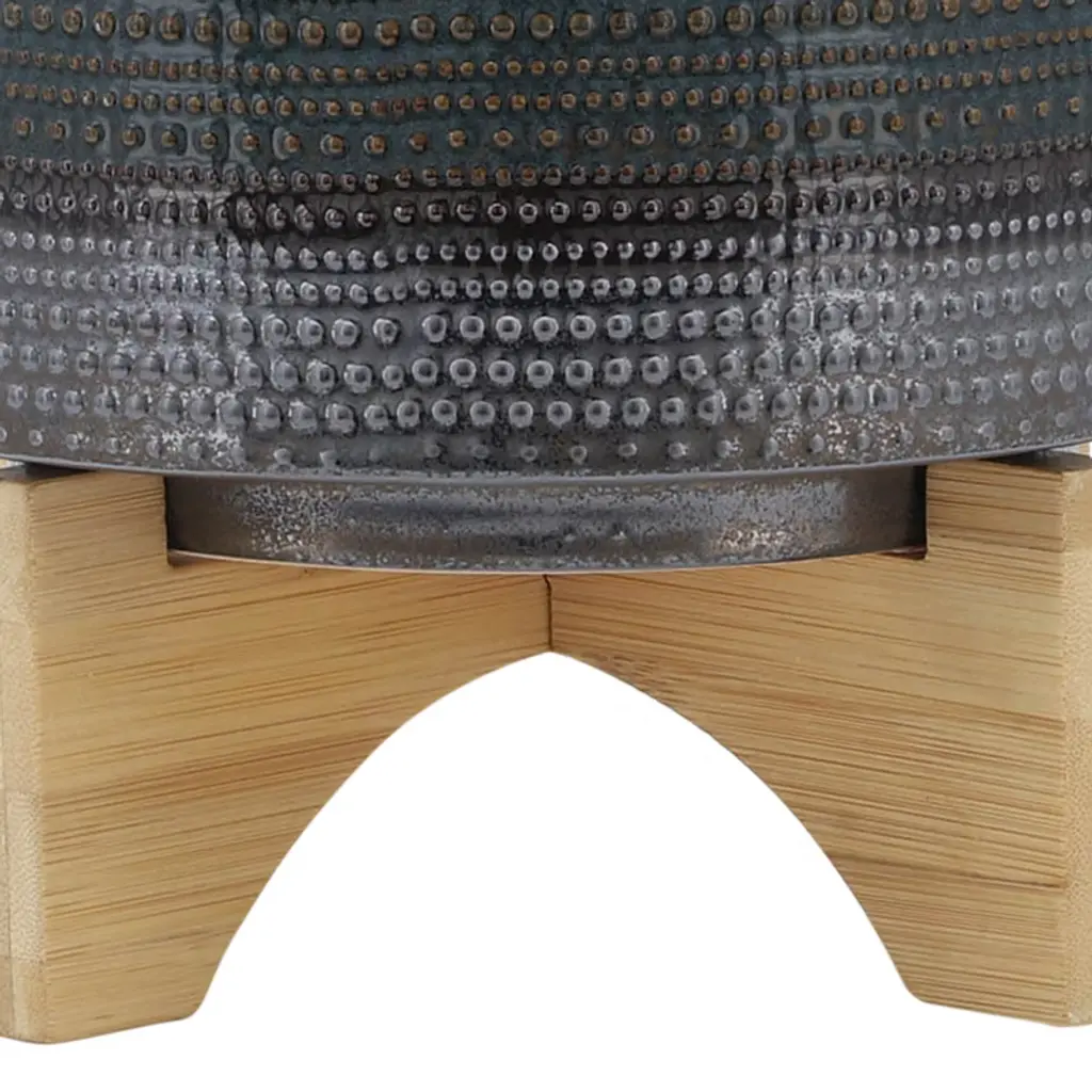Chery Life 8" Dotted Planter W/ Wood Stand, Green