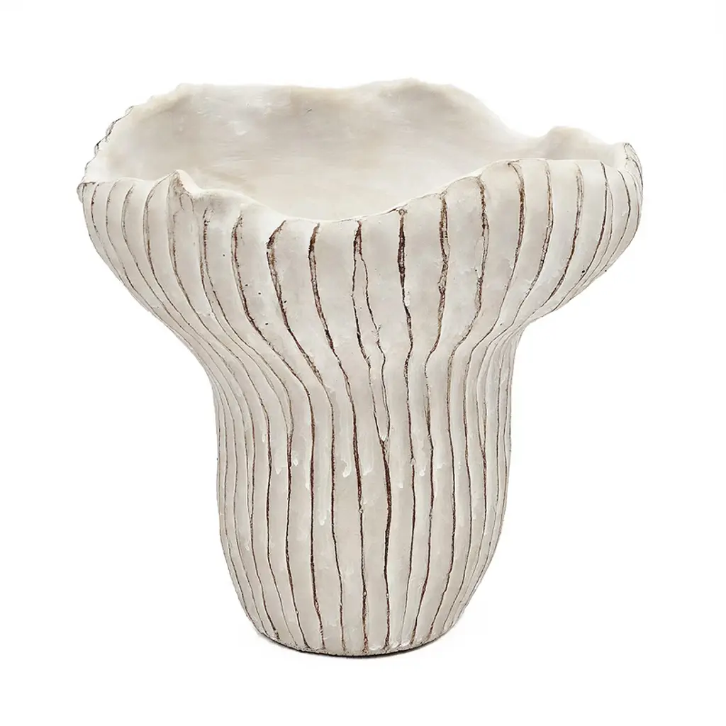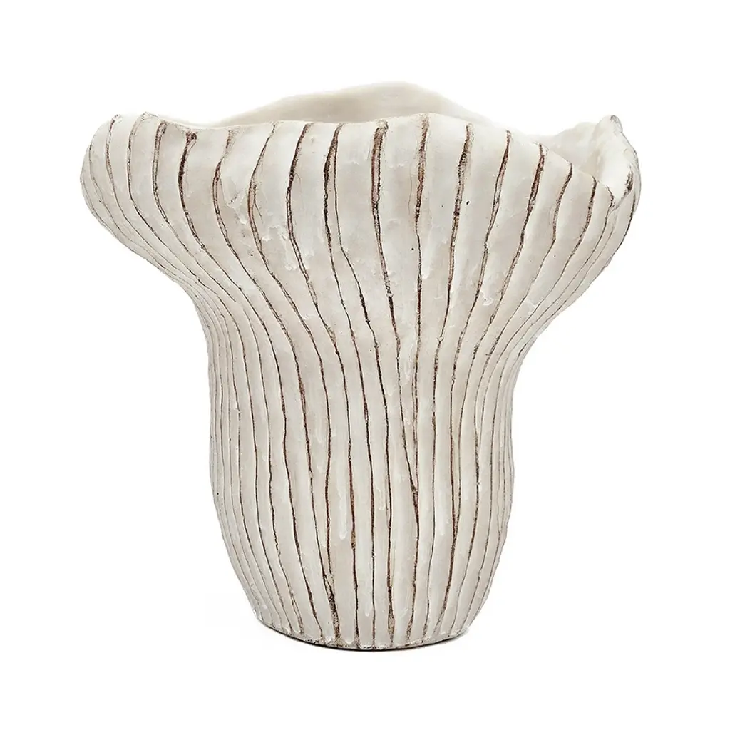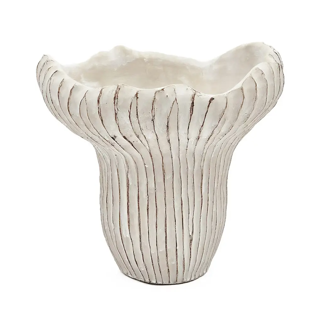 Masterfully replicating the intricate, calming beauty of sea coral, this decorative planter features a wavy, irregular silhouette, a vertical ridged texture, and a weathered beige finish. Whether displayed on its own or paired with succulents, herbs, or trailing plants, it will infuse any room in your home with serene energy.