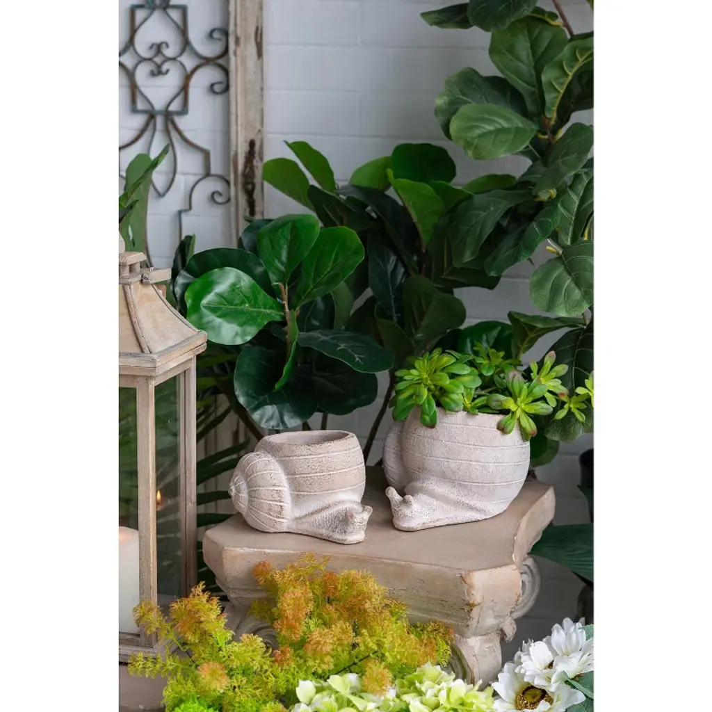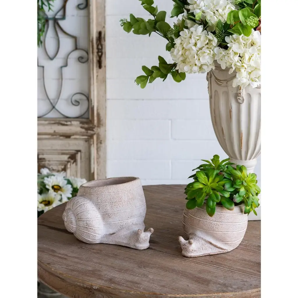 Chery Life 9.5x8.3x6" Decorative Sand And Cement Snail Planter With Textured Beige Finish