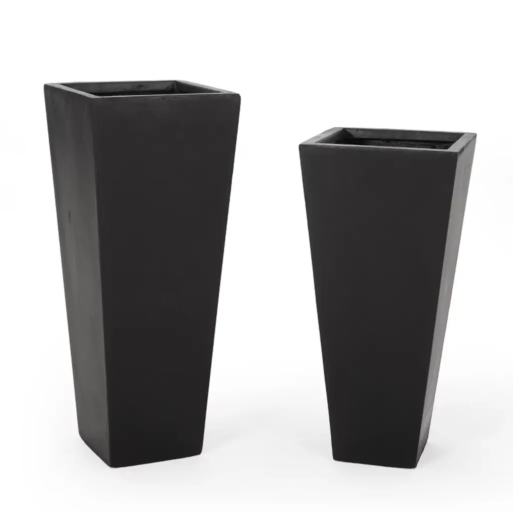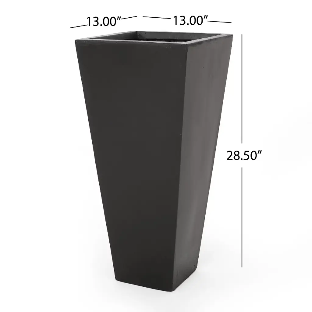 Standing tall and impressive, our planter set is the perfect addition to any outdoor space. From its sleek tapered design to its lightweight concrete structure, our set of planters will instantly enhance your patio or backyard space with style. This set offers a durable construction to ensure that your plant has a stable home to grow. Complemented with a matte finish, this planter set offers a classic look to your garden or porch. Perfectly crafted to hold your plants, each piece is the perfect accessory for your green thumb. Material: Lightweight Concrete Multiple Color Options No Assembly Required Large Dimensions: 13.00 inches deep x 13.00 inches wide x 32.50 inches high Medium Dimensions: 13.00 inches deep x 13.00 inches wide x 28.50 inches high