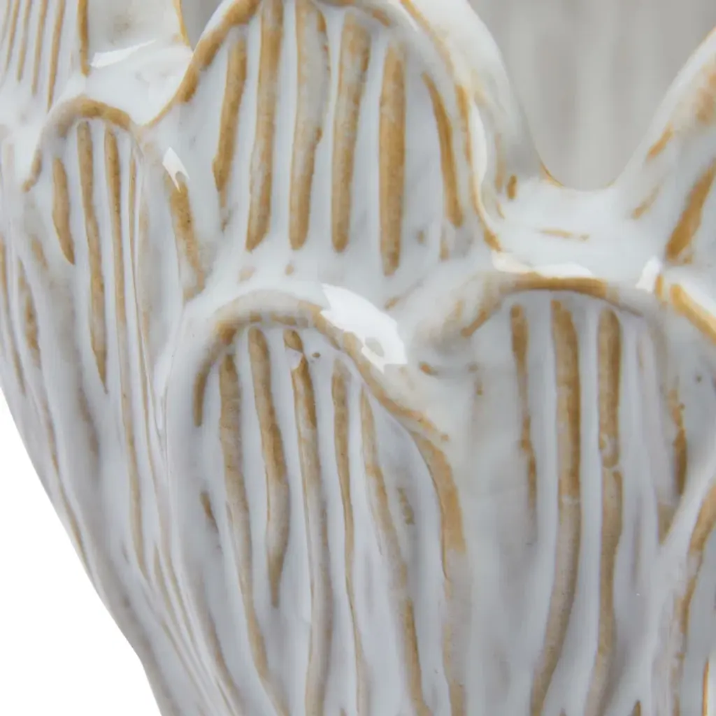 Cili Debossed Stoneware Flower Shaped Planter In Reactive Glaze